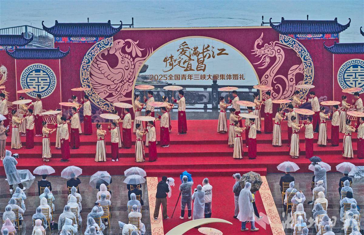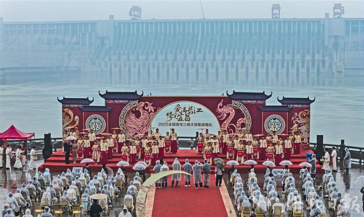 11 月 6 日,“爱满长江 情定宜昌” 2025全国青年三峡大坝集体婚礼在三峡大坝截流纪念园举办。24对来自全国各地各行各业的新人,身着中式礼服完成三拜之礼、互换戒指、共饮柑橘合卺茶等传统仪程,携手走过三峡大坝水电工程模型桥梁。