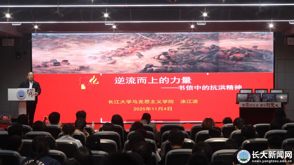 本次课程由马克思主义学院副院长、《信·荆楚》主讲教师涂江波,与学生代表王羿茹、周玉琼、郭星宇等联袂讲授。课程以“讲好抗洪故事,弘扬抗洪精神”为目标,通过真实书信为载体,生动再现了抗洪斗争中的感人瞬间。