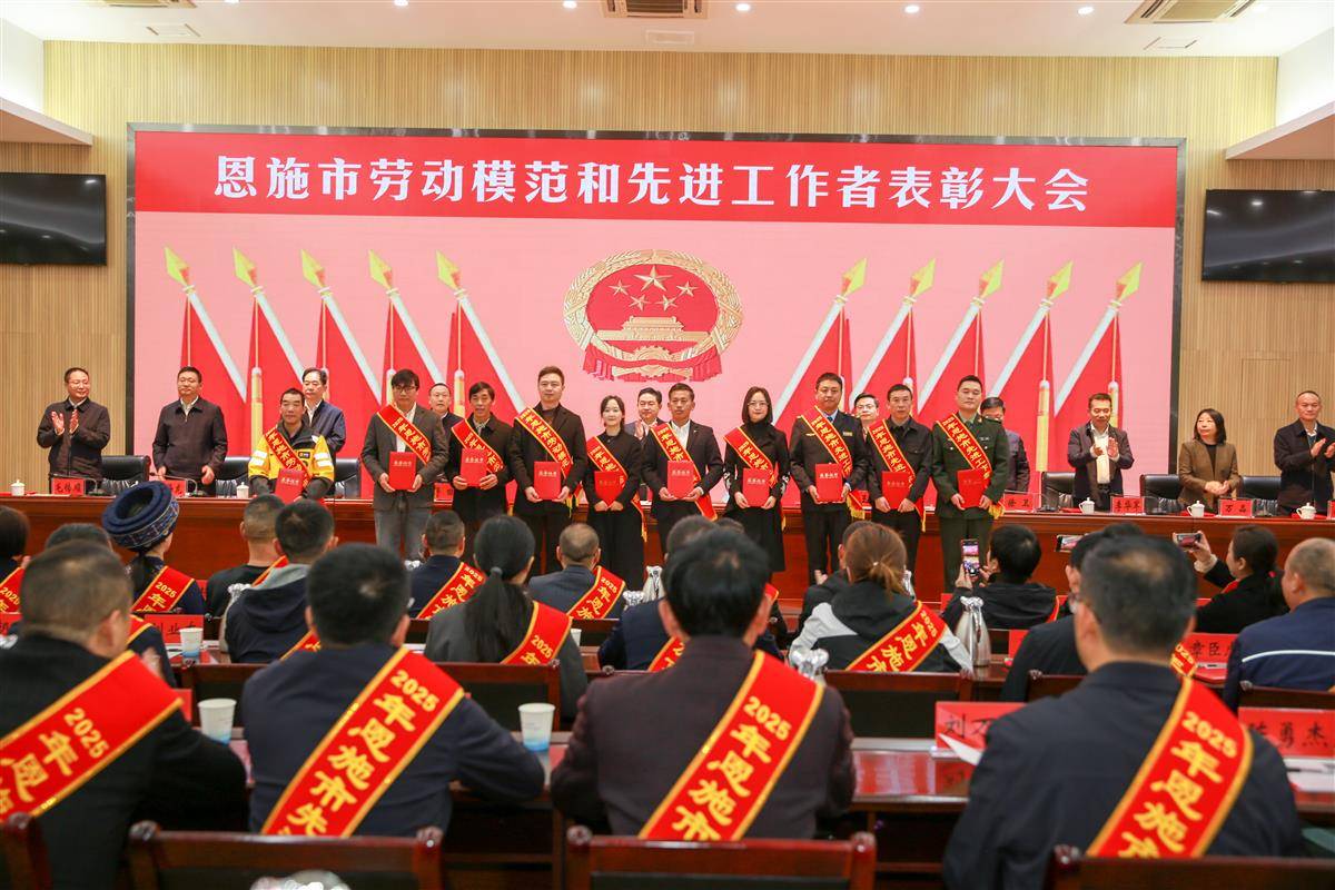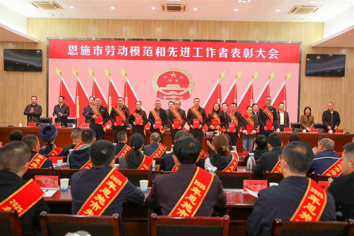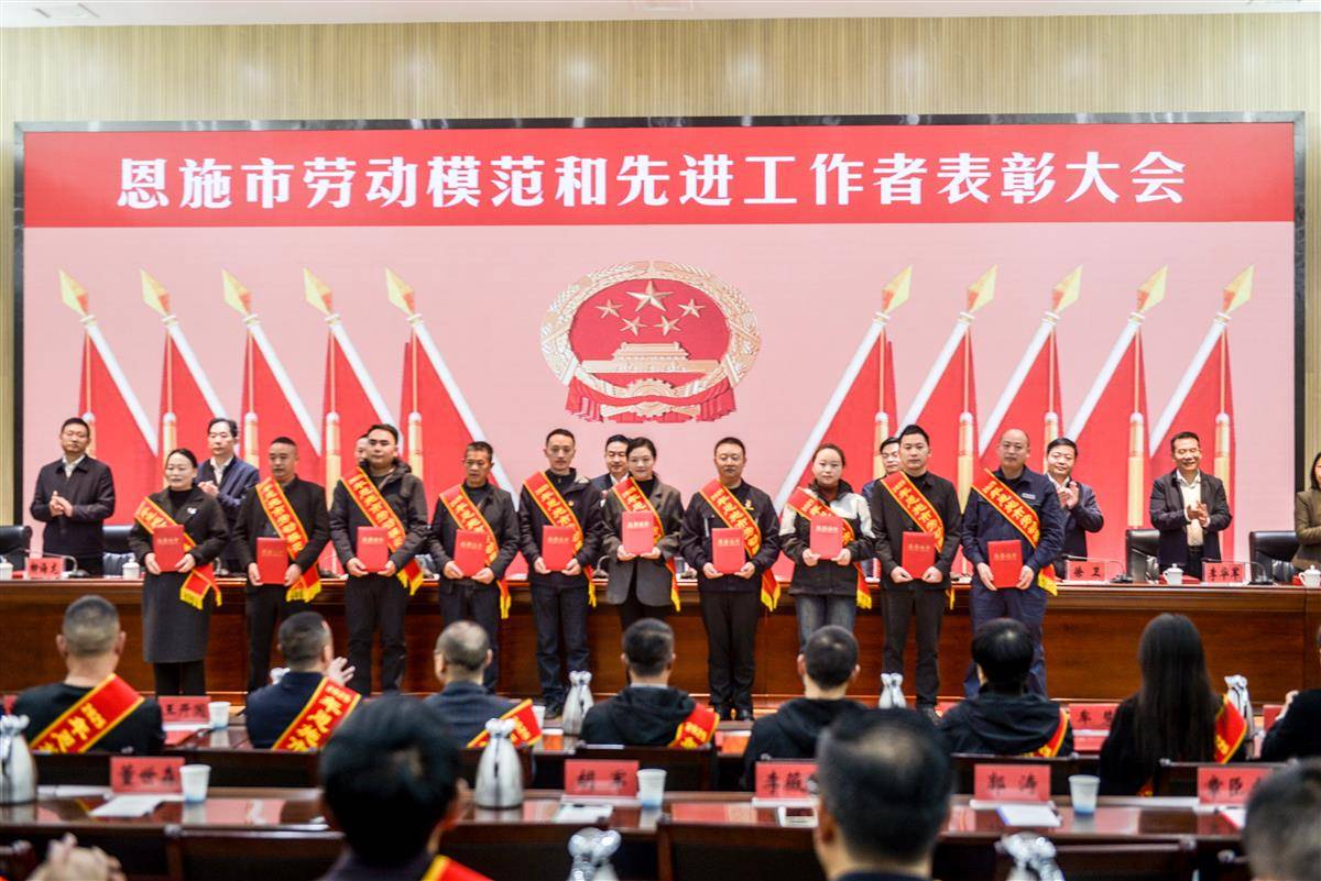 11月6日,恩施市举行劳动模范和先进工作者表彰大会,共表彰了52名劳动模范和27名先进工作者。市委、市人大、市政府、市政协“四大家”主要领导以及在家的市领导全部出席会议,向劳动模范和先进工作者表达敬意和礼赞。