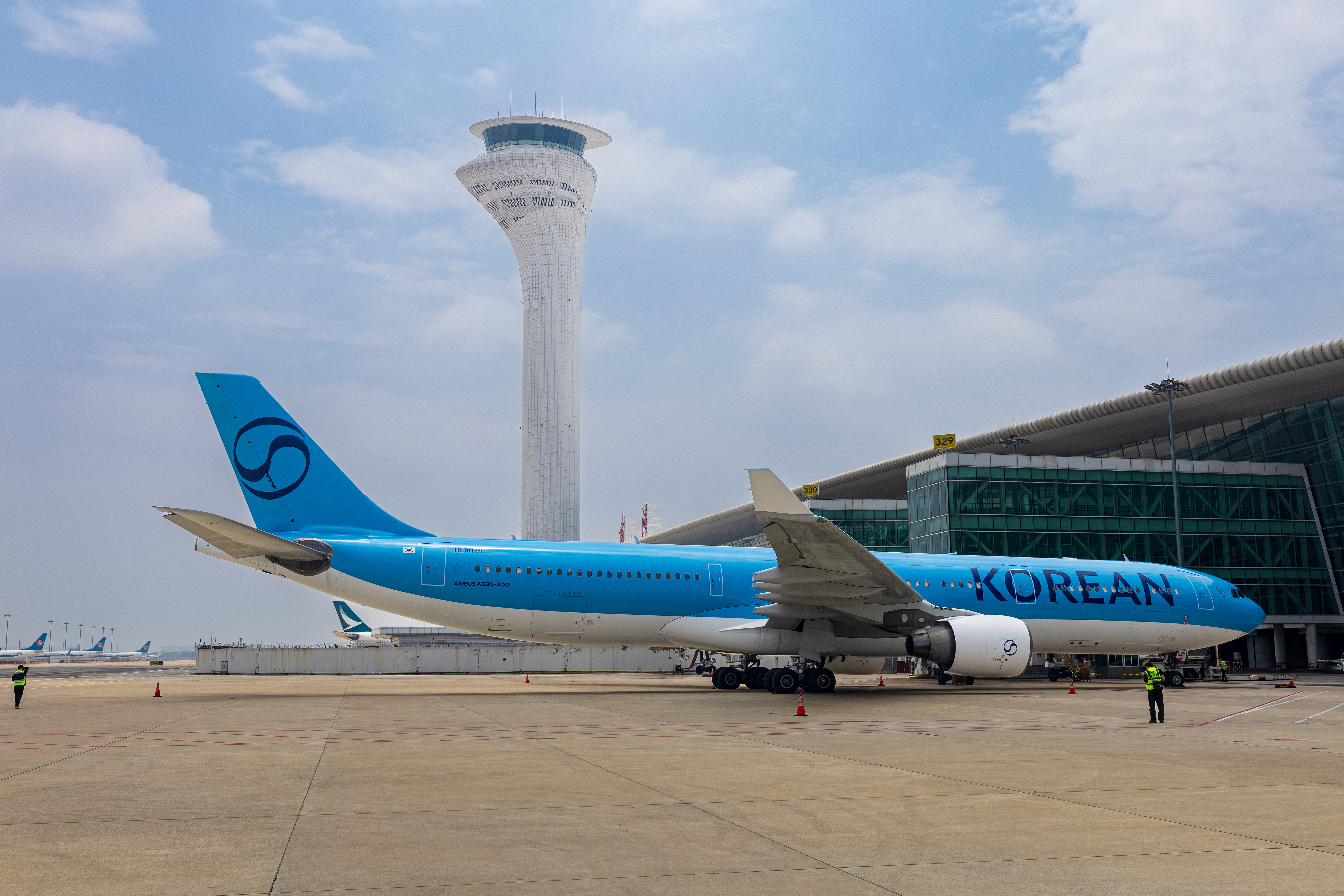 大韩航空韩国首尔直飞武汉航班降落天河机场