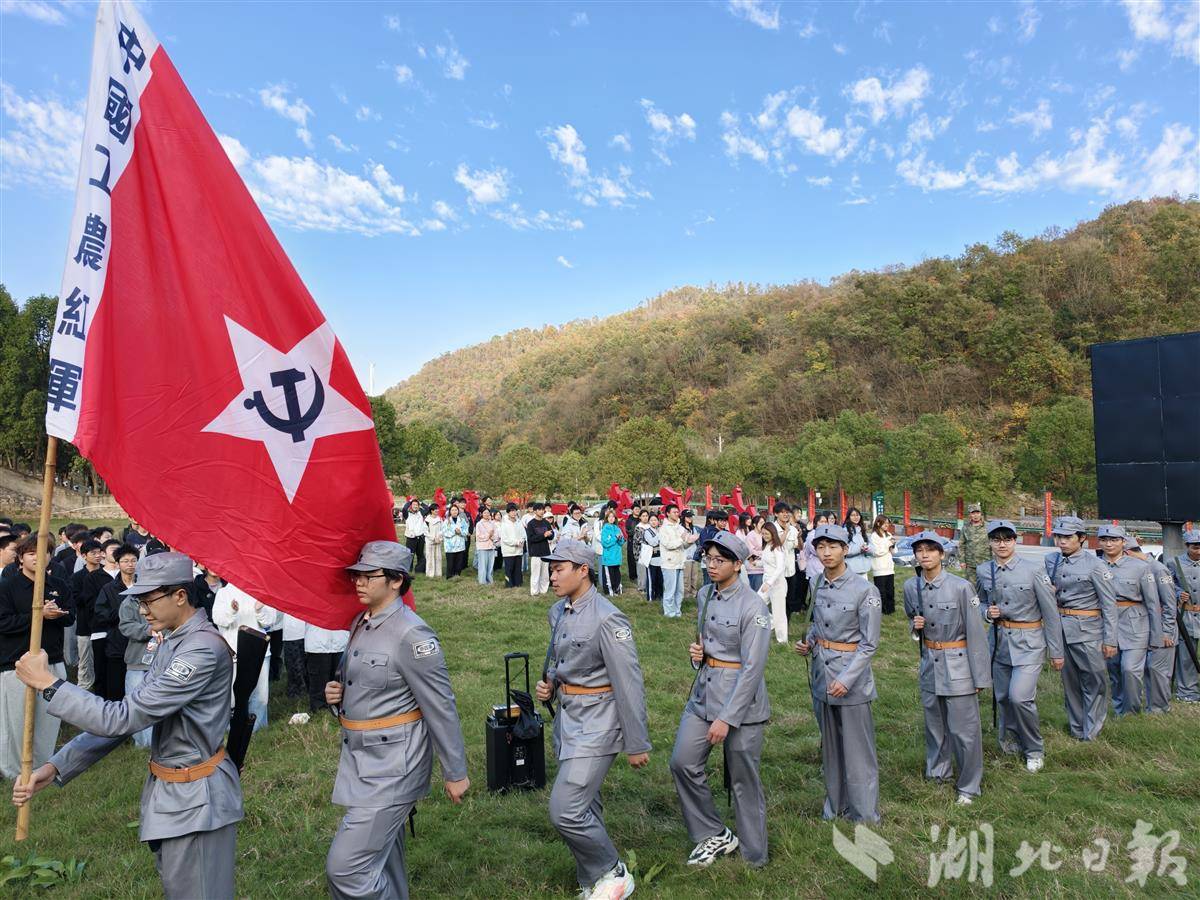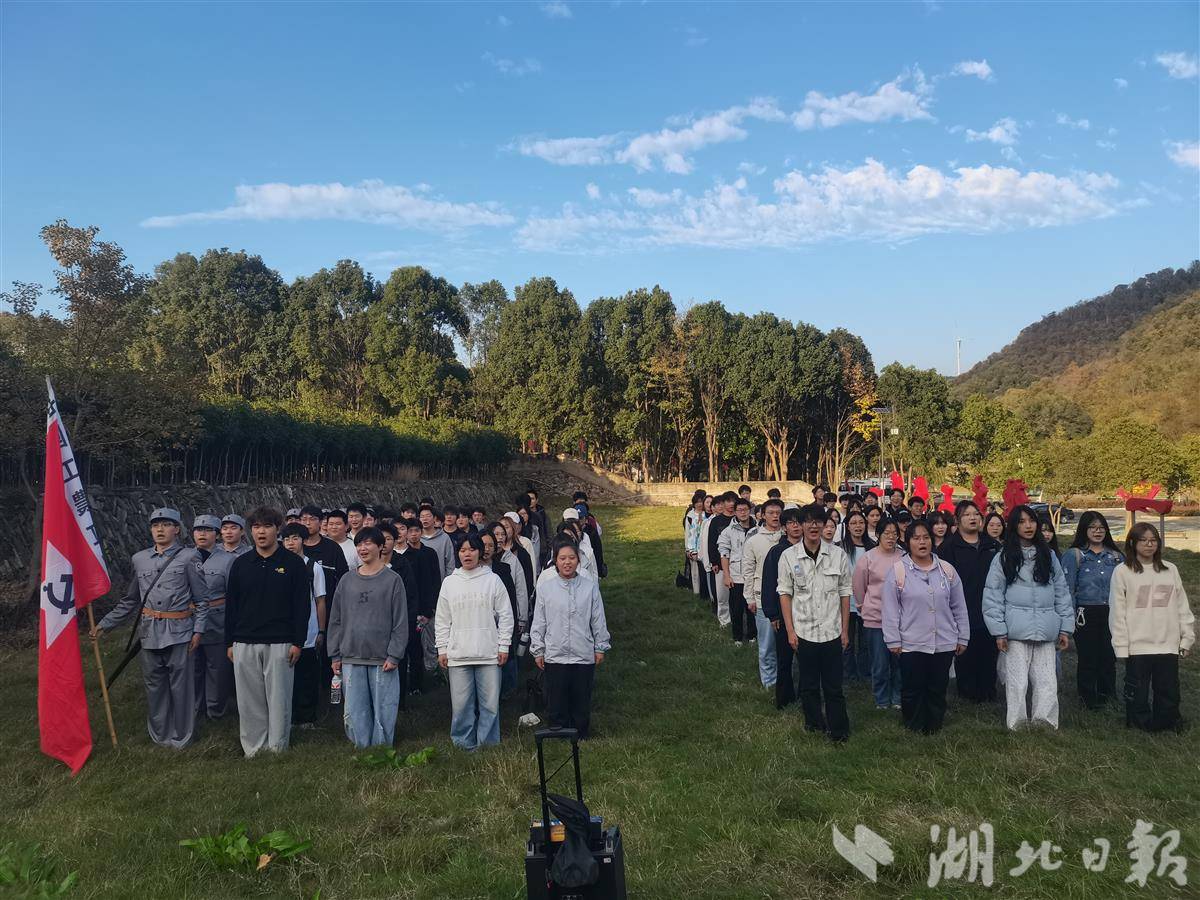 近日,大悟县人武部联合共青团大悟县委组织了一次红色研学活动。来自武汉传媒学院大悟校区与大悟县中等职业技术学校的80余名优秀共青团员及入团积极分子,赴芳畈镇白果树湾村开展“重走抗战路 青春践初心”活动。
