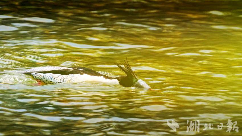 湖北日报客户端讯(通讯员朱敏、程国毅、李永梅)初冬的渔洋河,碧波微澜,景色宜人。11月4日,在渔洋河流域聂家河镇肖家岗村河段,素有“鸟中大熊猫”之称的中华秋沙鸭如约而至,这已是它们连续第12年选择宜都作为越冬家园。