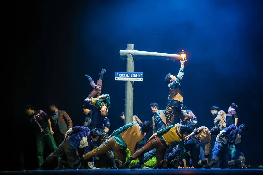 舞者的肢体语言与队形的变换,是整部作品叙事结构的支点。路灯在队形变换中幻化为舞者手中的“马灯”,这一转换绝非简单的道具替代,而是将当代生活场景拉回至艰苦岁月——马灯作为长江航运的“生命之光”,曾照亮渔民夜航的归途,也见证着他们与风浪搏斗的勇气。