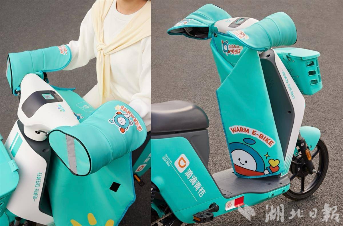 2025年滴滴青桔“暖暖车”装备整体延续经典配置,由御寒把套和挡风披组成,外部在以往防水、防风、保暖的基础上进一步升级材质,能满足不同城市的骑行需求。