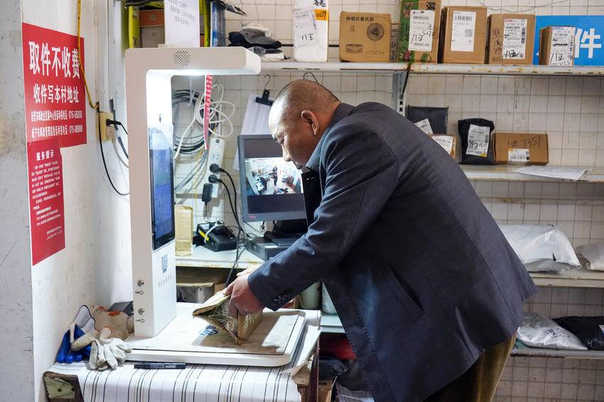 同日上午9点,一辆装载着快递件的公交车准时抵达茶庵岭镇八王庙村客货邮综合服务点。站点负责人周昭熟练地核对清单、扫码入库,将快递件整齐地码放在货架上。很快,收到取件码短信的村民卢栋梁走进站点,迅速在货架上找到自己的快递件,核对单号、地址、姓名后,到前台自助扫码出库,全程不到一分钟。“以前取个快递,得跑到几公里外的镇上,现在在家门口就能取件,特别方便!”卢栋梁笑着说。