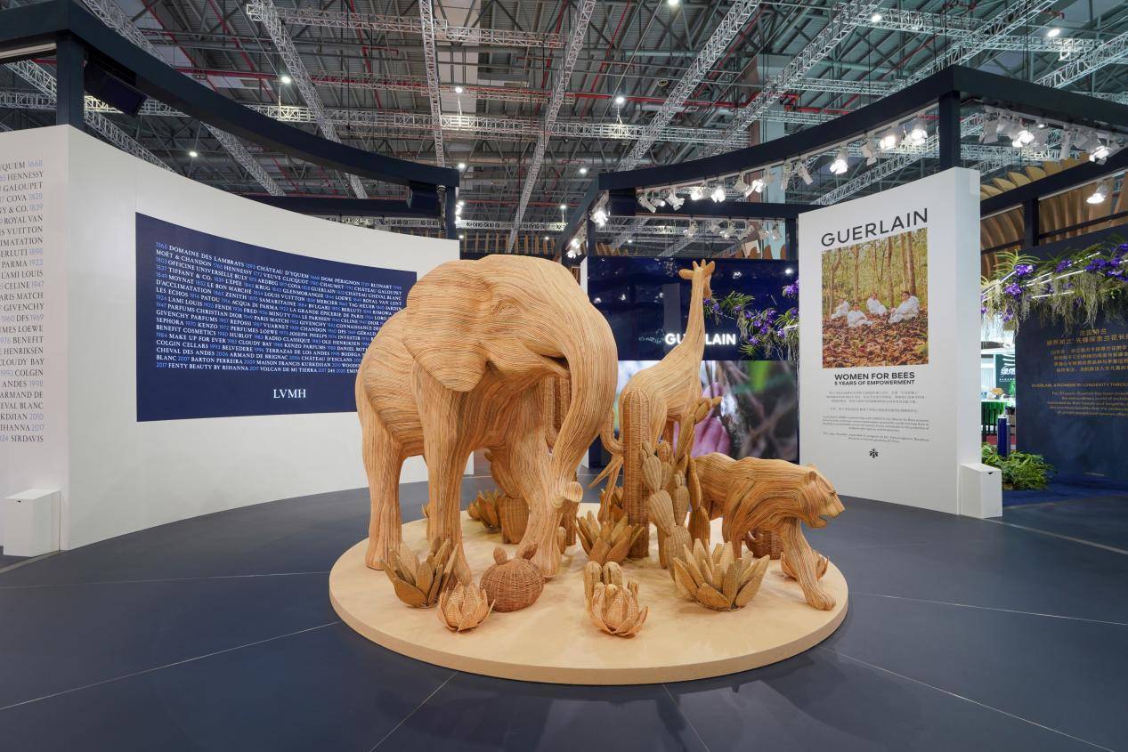 同时,迪奥工坊的面料余料与经升级再造的奢美材质也被赋予了新的生命,化作生动俏皮的野生小动物,被带到此次进博会上:诸多能工巧匠以手工剪裁与缝制技艺,精心打造出小狗、蜜蜂、松鼠等灵动造型。大自然的灵感与匠心工艺在此交汇,巧妙呼应迪奥对可持续理念的诗意诠释。