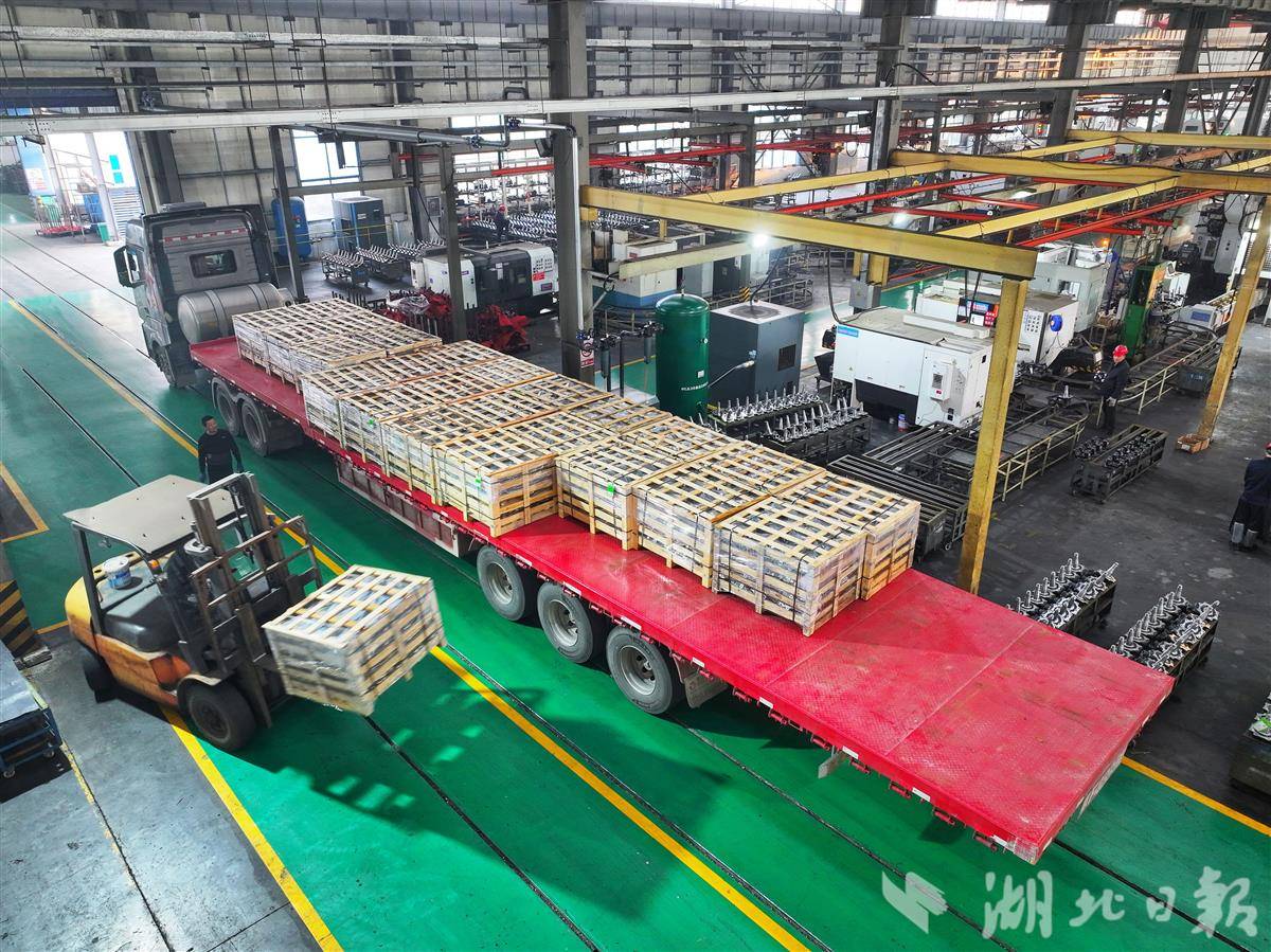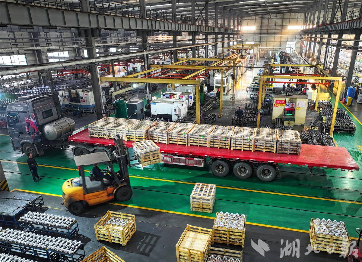 11月5日,在谷城经济开发区湖北三环锻造有限公司,大货车直接开进生产车间,产品下线检测后现场装车发货。
