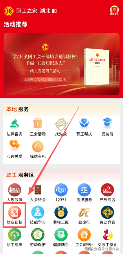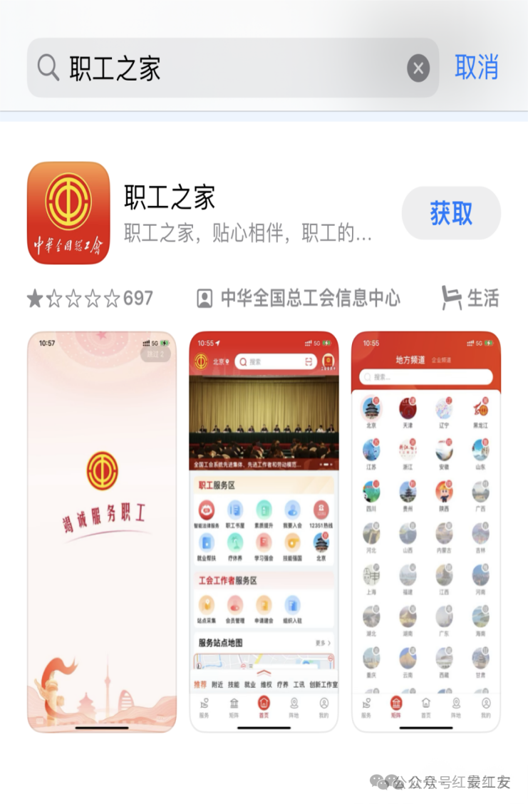 扫码或者应用商城搜索下载“职工之家”APP→就业帮扶→就业直播→红安专场即可查看预约本场直播。 1.下载“职工之家”APP。