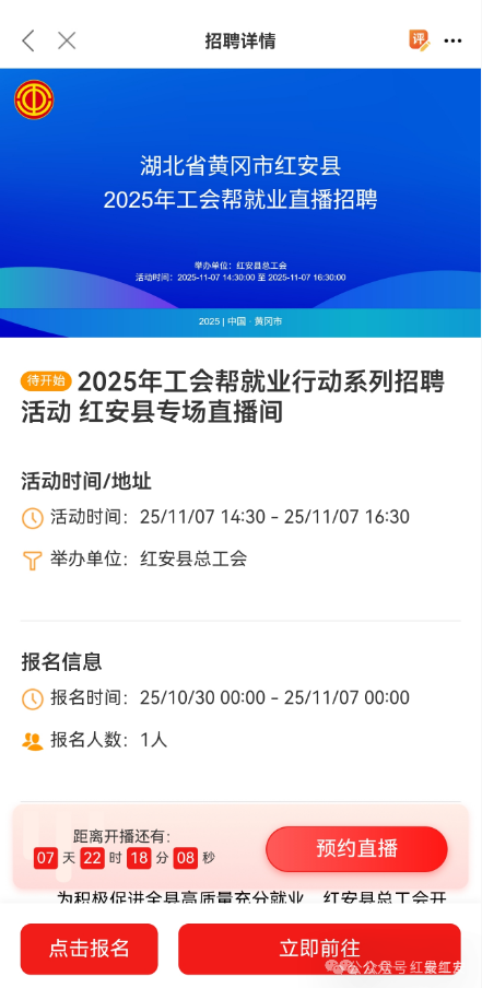 为深入贯彻落实省委省政府和全总关于就业服务工作的部署要求,积极促进转岗待岗职工、困难职工、残疾职工、困难职工家庭的高校毕业生、农村转移劳动力等群体高质量充分就业,切实发挥工会在促进就业中的积极作用,红安县总工会特开展2025年“工会帮就业”系列直播招聘活动。