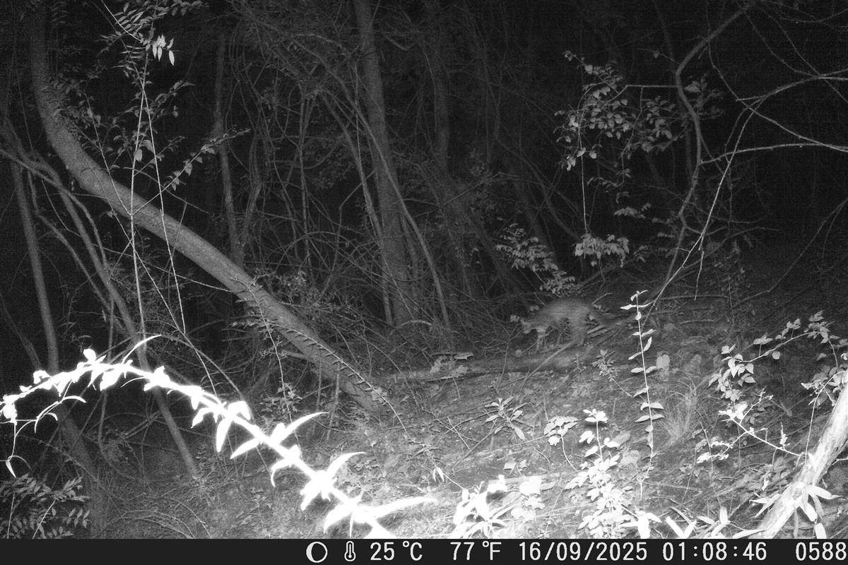 在当阳青龙湖国家湿地公园,红外相机在夜色中清晰定格下小灵猫的活动轨迹:这只小型食肉动物谨慎穿行于林间,标志性的背部纵纹、体侧黑褐色斑点及环状尾纹在镜头下清晰可辨,动作敏捷却不失警觉。小灵猫在我国分布范围狭窄,野外种群数量稀少,近年来有效观测记录极为有限。此次拍摄是当阳地区首次获得小灵猫的实证影像,填补了该区域小灵猫分布记录的空白,表明青龙湖国家湿地公园具有良好的完整性与栖息地承载力,对后续物种保护与生态修复具有重要的参考价值。