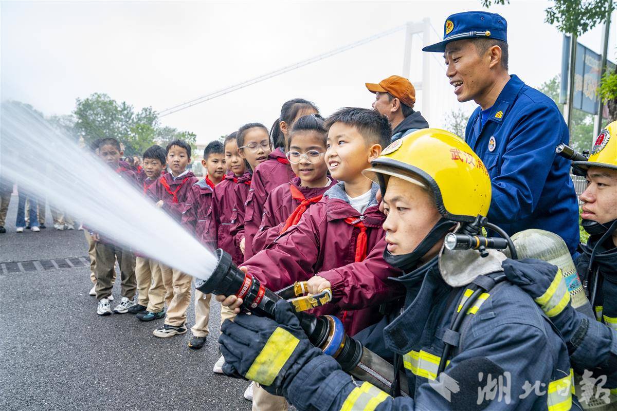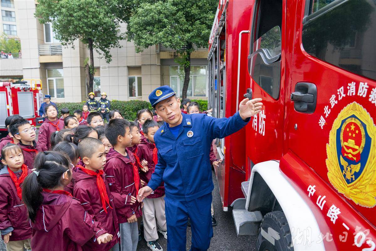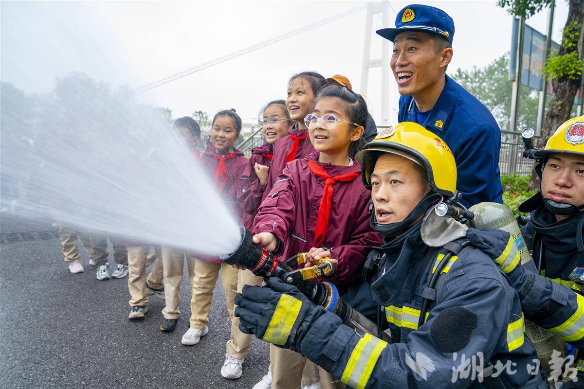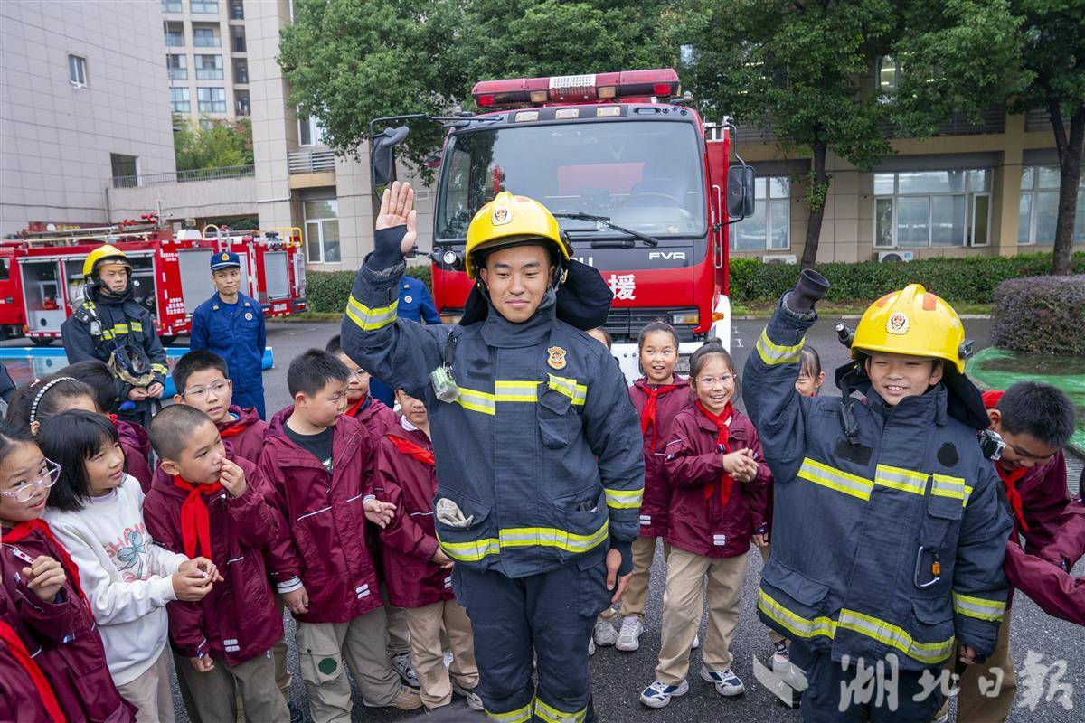 11月7日,武汉市武昌区中山路小学紫都二分校,中山路消防救援站的消防员们走进校园,为孩子们送上了一堂生动有趣的消防安全“启蒙课”。今年11月9日是第34个全国消防日,主题为“全民消防、生命至上——安全用火用电”。活动现场,消防员化身“安全导师”,用通俗易懂的语言结合校园火灾实例,讲解了火灾成因、“119”报警规范、火场逃生技巧等核心知识。消防员还邀请孩子们沉浸式体验穿戴消防装备,一起携手使用水枪模拟灭火演练。