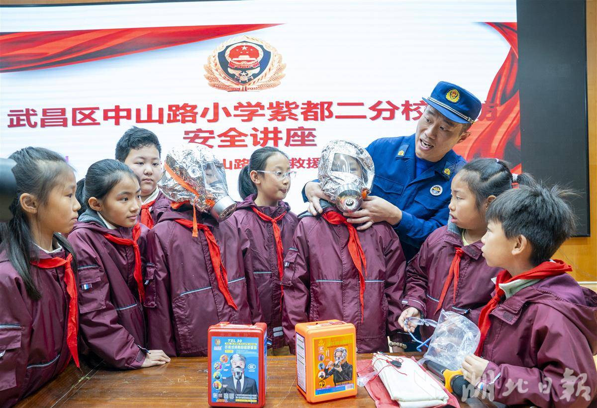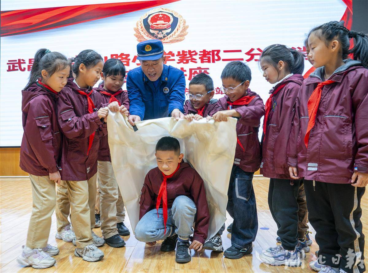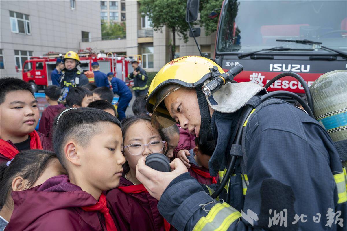 11月7日,武汉市武昌区中山路小学紫都二分校,中山路消防救援站的消防员们走进校园,为孩子们送上了一堂生动有趣的消防安全“启蒙课”。今年11月9日是第34个全国消防日,主题为“全民消防、生命至上——安全用火用电”。活动现场,消防员化身“安全导师”,用通俗易懂的语言结合校园火灾实例,讲解了火灾成因、“119”报警规范、火场逃生技巧等核心知识。消防员还邀请孩子们沉浸式体验穿戴消防装备,一起携手使用水枪模拟灭火演练。