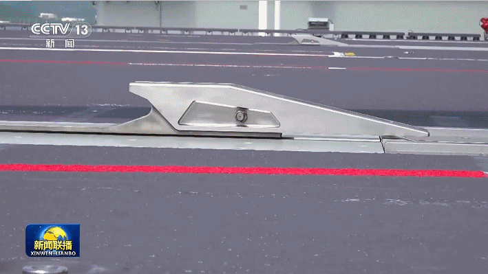 飞行甲板上有4道阻拦索、3个弹射起飞位