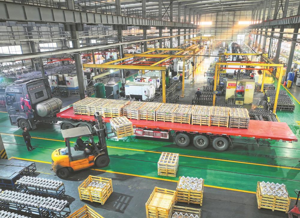 11月5日,在谷城经济开发区湖北三环锻造有限公司,大货车直接开进生产车间,产品下线检测后现场装车发货。