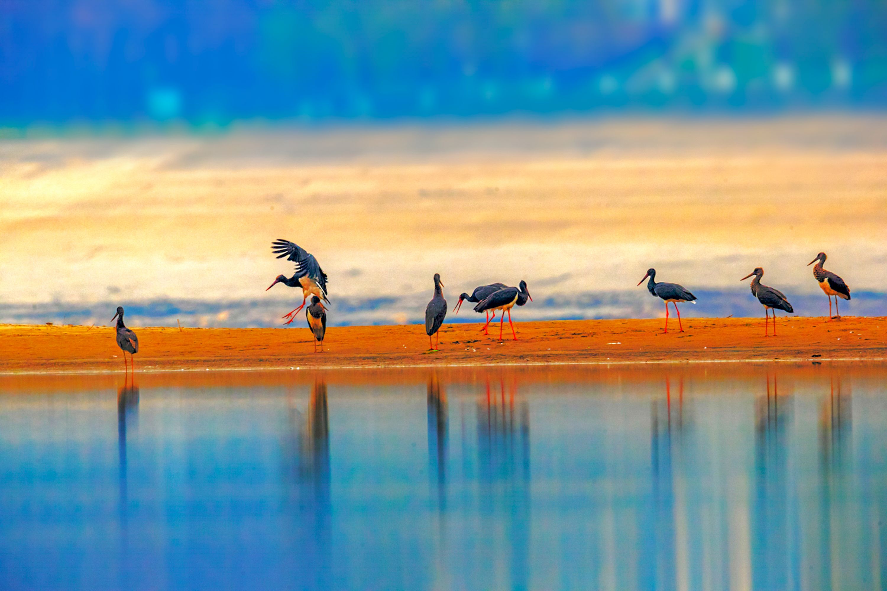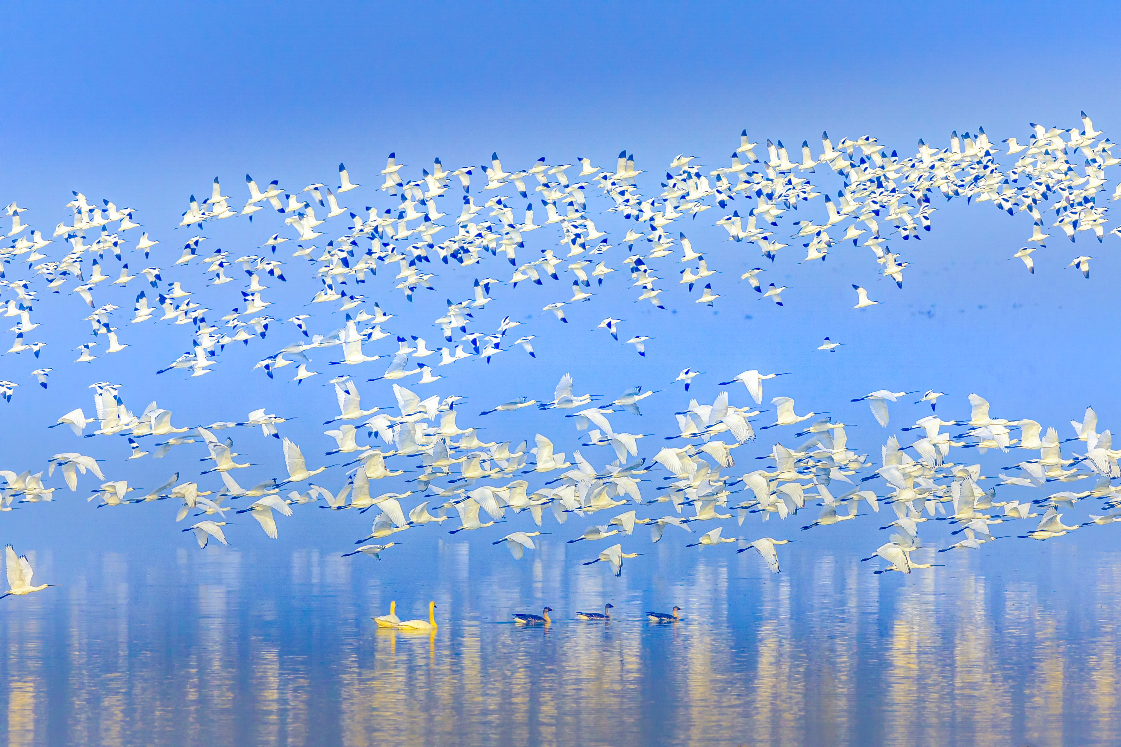 沉湖湿地的“鸟浪”。魏斌 摄