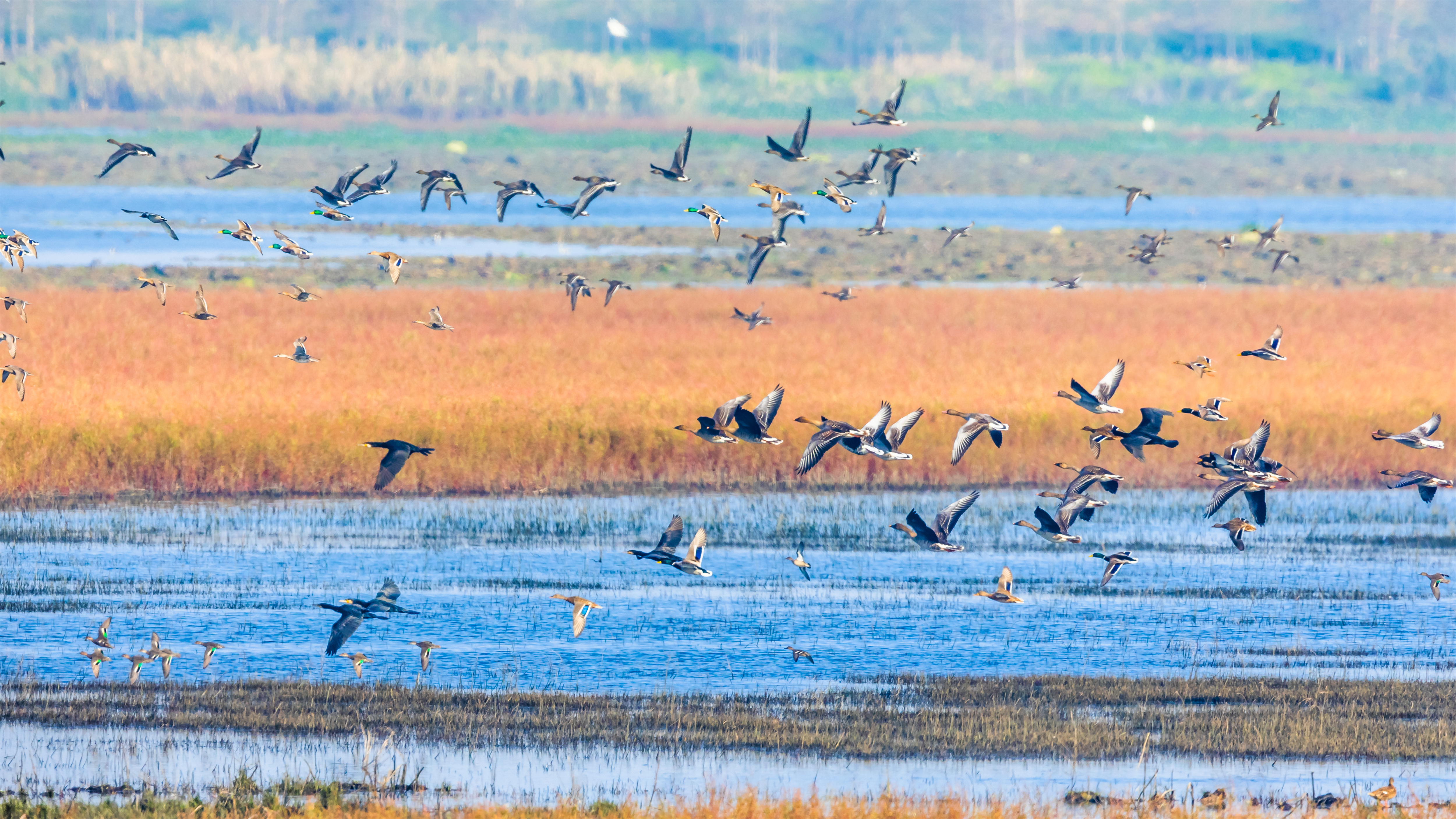 沉湖湿地子湖王家涉湖迎来首批冬候鸟。魏斌 摄