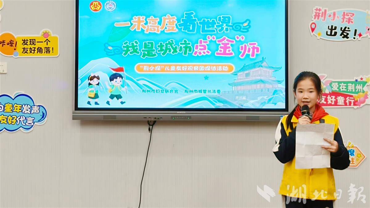 近日,在荆州市民之家大厅里,30名“荆小探”儿童友好观察团首批成员(9-12岁)身着黄色马甲,以童真视角为城市公园“微更新”与“精提升”建言献策。
