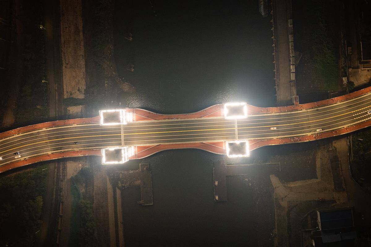2025年11月8日晚,位于武汉市青山区的武汉首座升降桥——右岸大道开启桥灯火辉煌,4根桥梁升降立柱在夜幕中十分耀眼,吸引不少市民前来打卡拍照。10月31日,该桥正式试通车。这座横亘在武钢运河之上的大桥,是华中首座开启桥,桥梁可升降部分全长104米、提升桥面最宽达46.2米、最大可提升27米、提升重量2650吨,它巧妙地平衡了水路与陆路的交通需求。