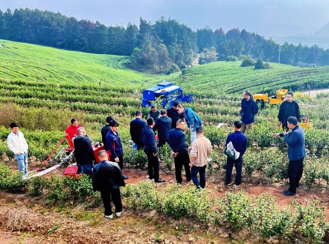 ▲11月5日,宜昌市丘陵山区茶园田间管理机具现场演示观摩活动在夷陵区三斗坪镇秋千坪村仙鹤观茶园基地火热开展。