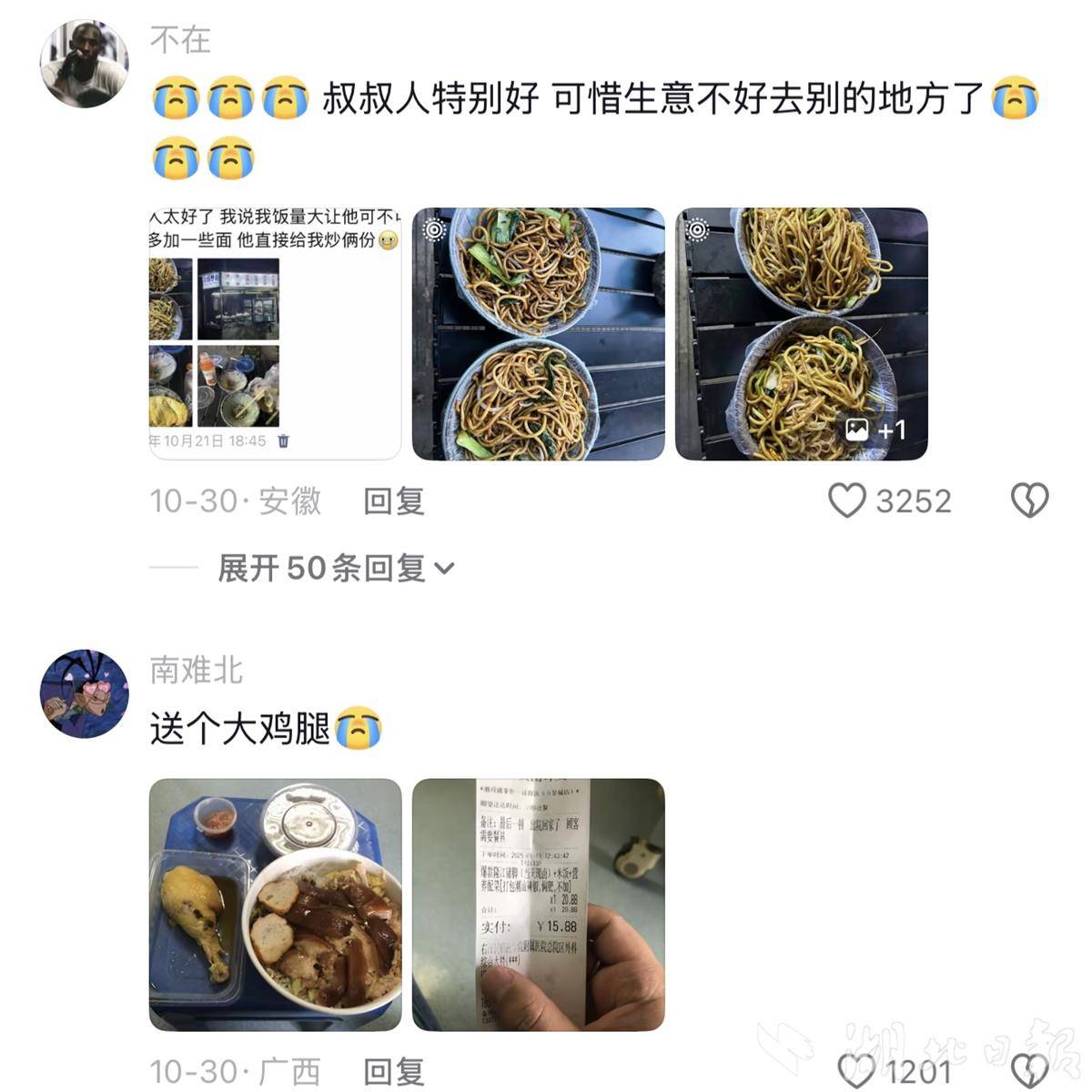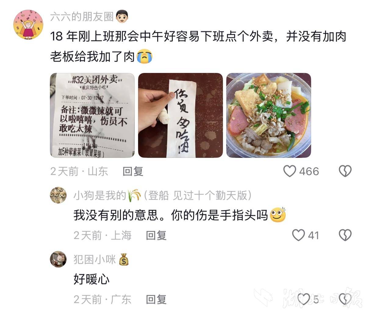 “看到这家面馆,想起了三年前我的餐饮店。”另一位网友动情回忆,并贴出了一张模糊的订单截图,“有位客人备注‘老板我胃口大,可以多给点饭吗’,从那天起,我天天多送他两盒饭。这份默契,成了我开店时最温暖的记忆。”