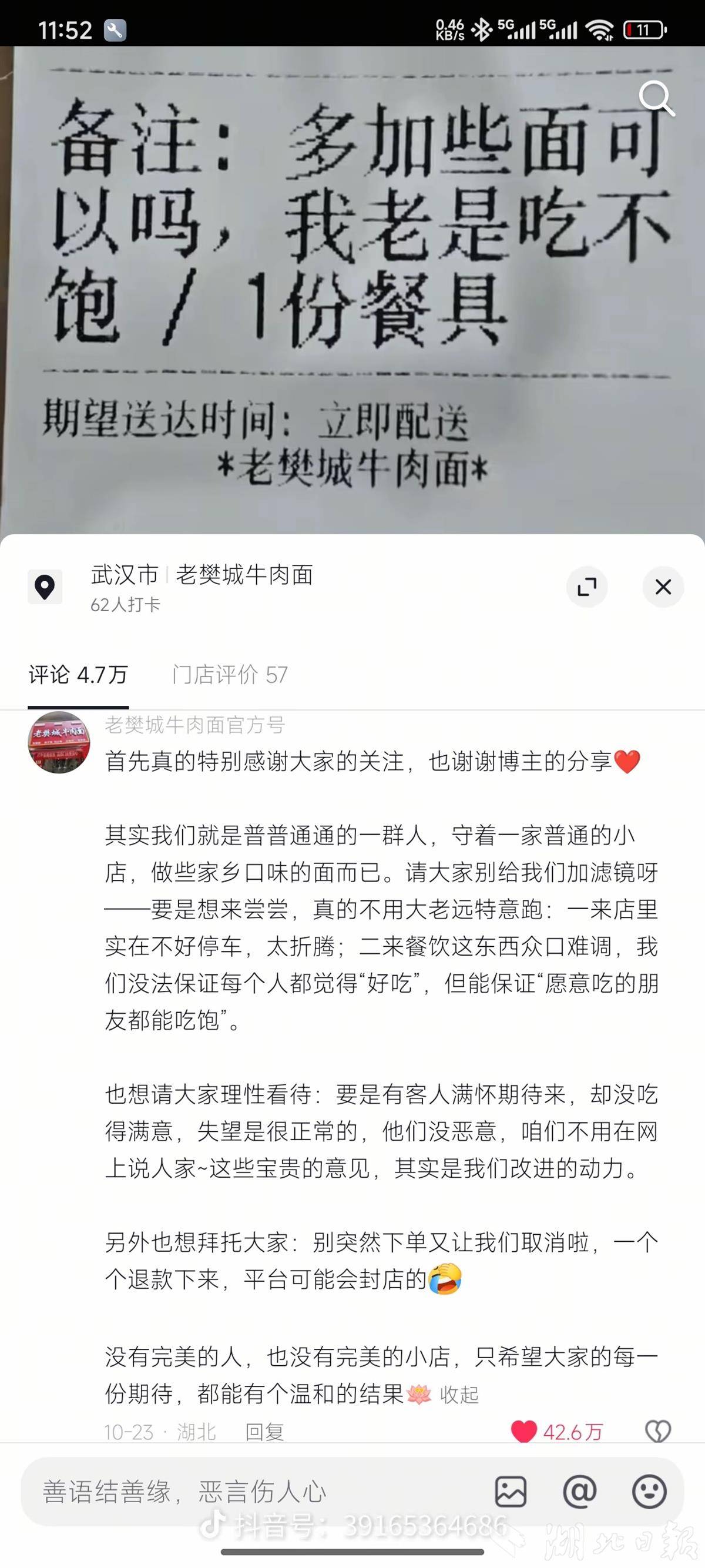 “我们就是普普通通的一群人,守着一家普通的小店。”他在回应中处处为顾客考虑,“要是想来尝尝,不用大老远特意跑。我们没法保证每个人都觉得‘好吃’,但能保证‘愿意吃的朋友都能吃饱’。”
