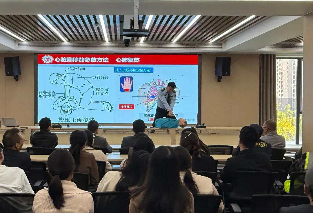 活动邀请消防教官开展消防安全知识专题培训。教官深入剖析近期典型火灾事故案例,阐述了火灾发生的原因、日常预防措施以及火场逃生自救的正确方法,重点演示了灭火器、消防栓的规范操作流程,并现场组织心肺复苏(CPR)实操演练。