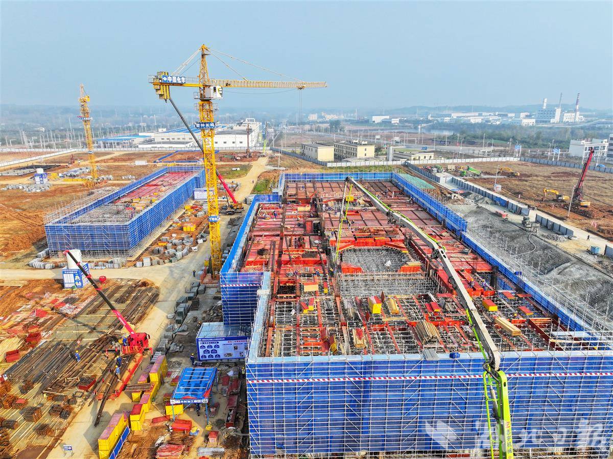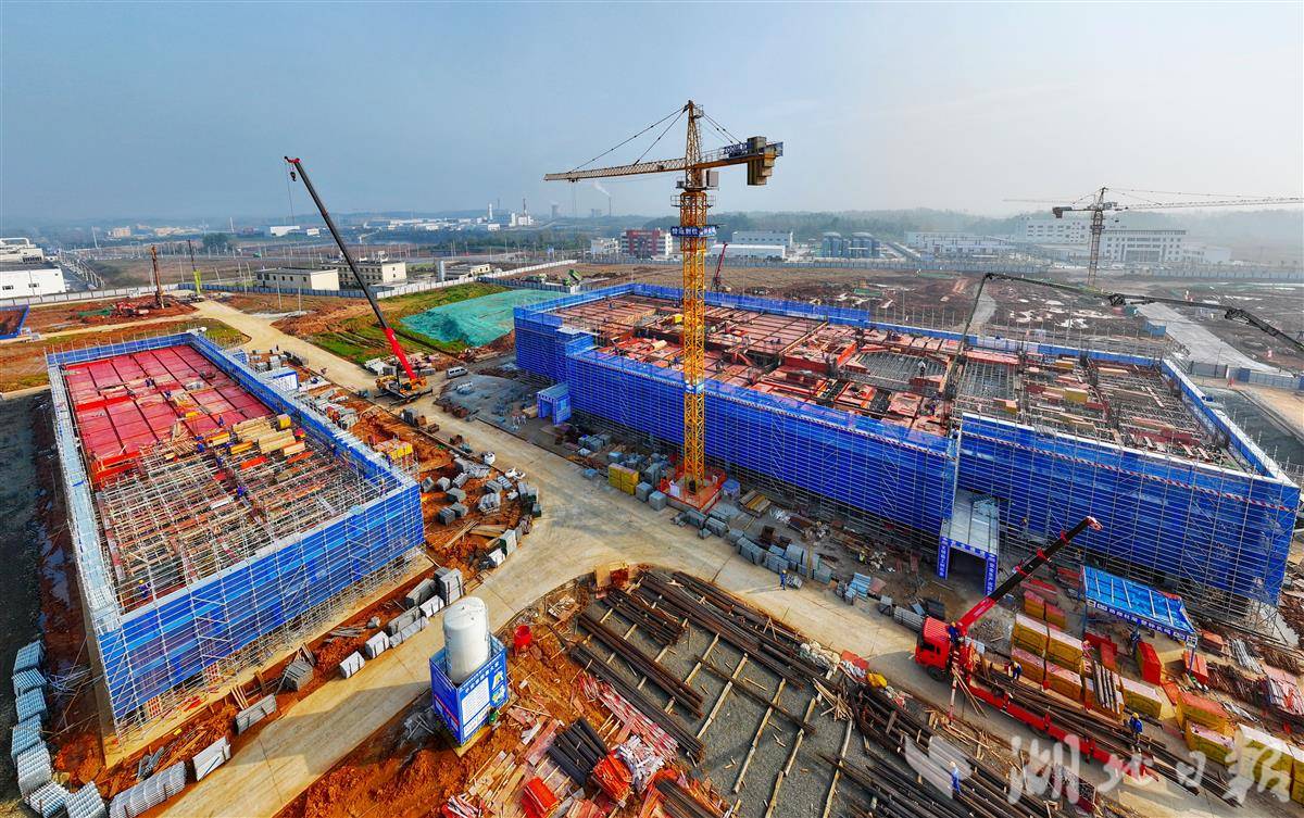 11月5日,位于谷城经济开发区的兴发保谷磷化工产业园施工现场,一派热火朝天的建设景象。该产业园旨在打造中部地区规模最大的磷化工全产业链基地,探索“资源地+生产地”协作新模式,采用“采矿、选矿在保康县,精深加工在谷城县”的跨区域协作机制,初步构建肥料级、电池级、食品级三级磷化学品开发体系和末端固废综合利用循环,实现磷资源价值最大化,可实现年产值逾60亿元。(视界网 谢勇 摄)