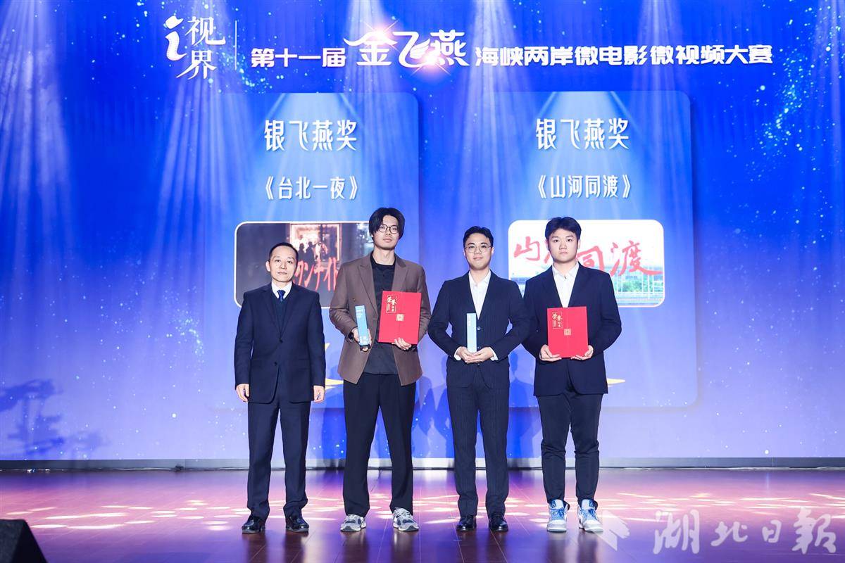 “银飞燕奖”由两岸作品共同获得:台湾地区作品《台北一夜》与湖北经济学院作品《山河同渡》共享此项荣誉;台湾团队创作的《同脉诗心》、青岛科技大学作品《一只想飞的牛》获“银飞燕提名”,覆盖两岸高校与创作团体。