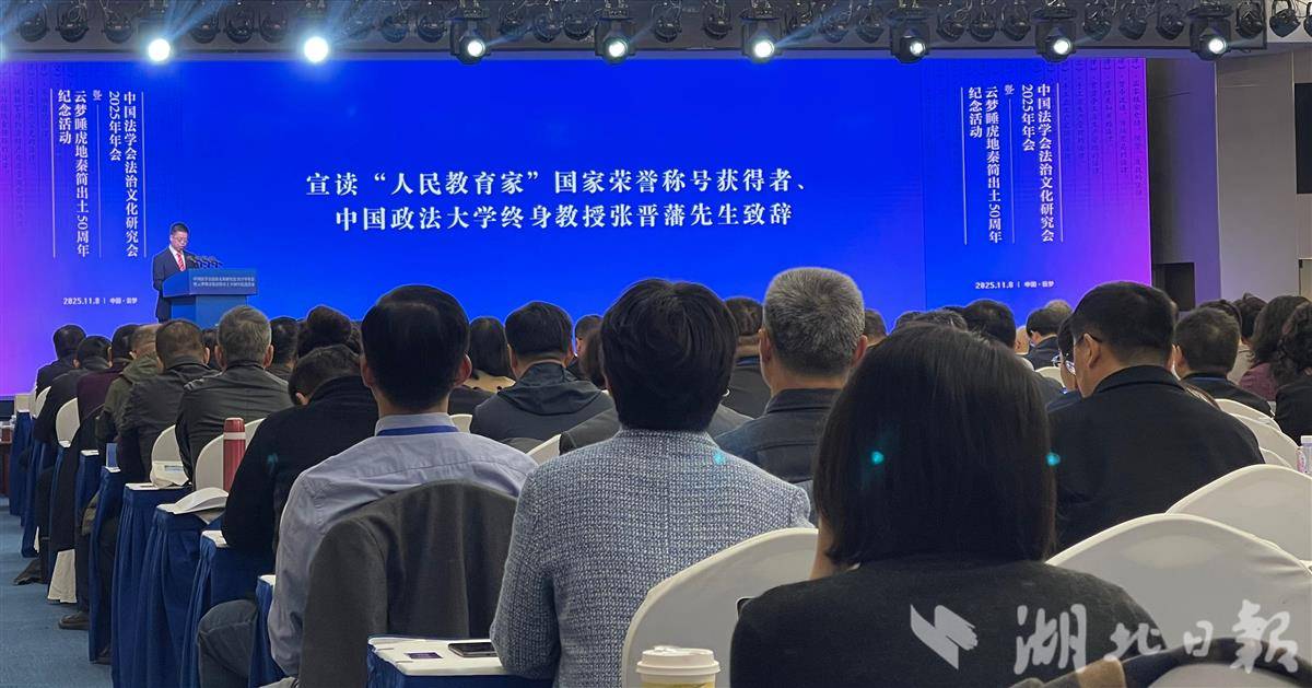 湖北日报讯(记者海冰、王欣)11月8日,中国法学会法治文化研究会2025年年会暨睡虎地秦简出土五十周年纪念活动在云梦举行。中国政法大学终身教授、博士生导师张晋藩先生在书面致辞中称,“睡虎地秦简是世界级瑰宝,值得珍视”“在发掘地举办年会是法学界盛会,正当其时”,建议“将睡虎地打造成法学研究永久性会址”。