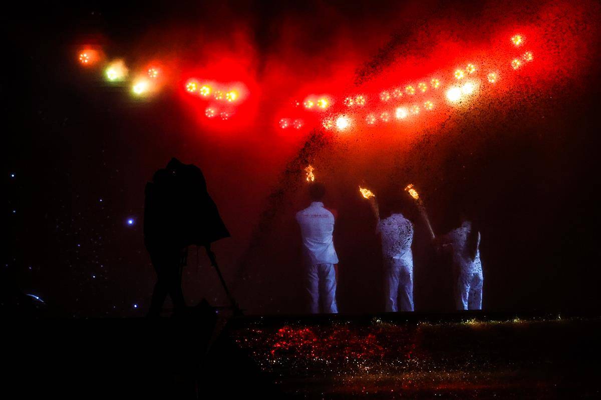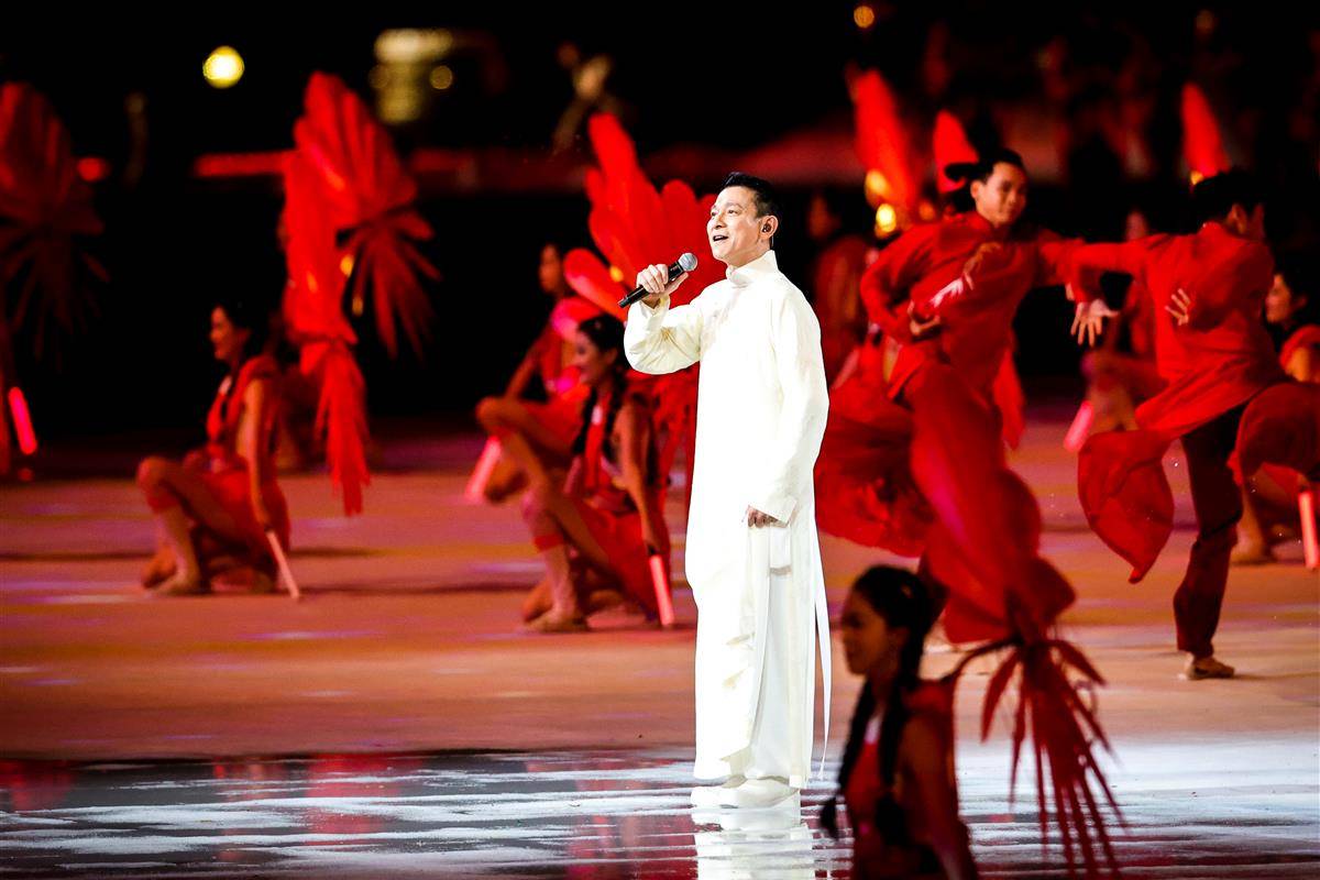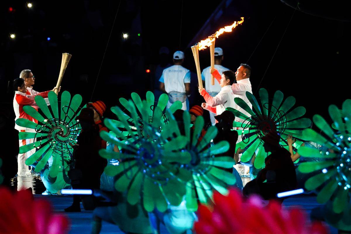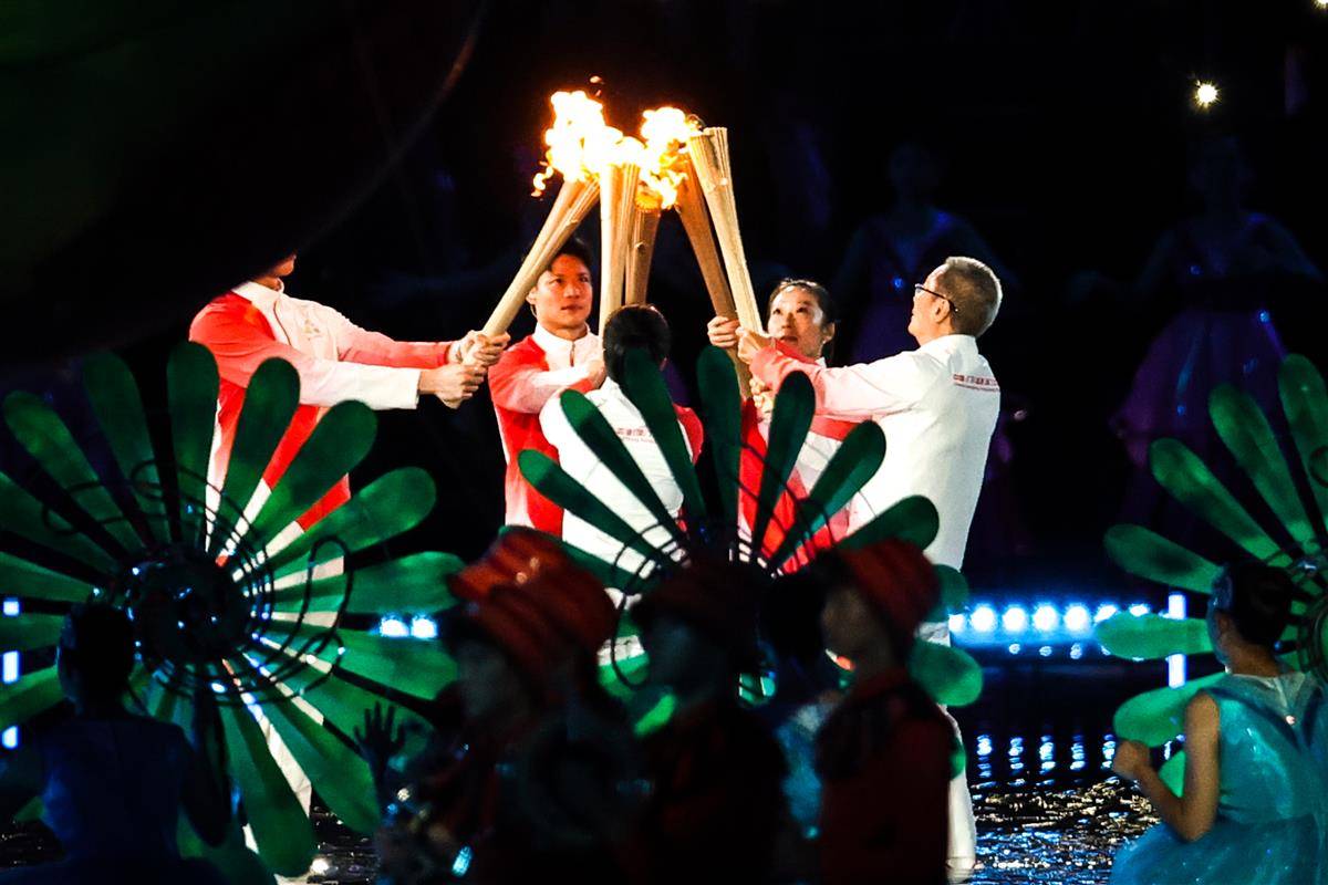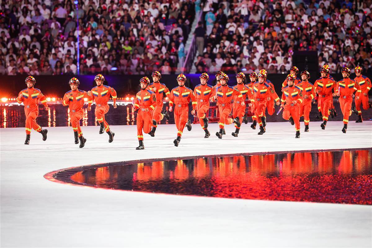 开幕式以“圆梦未来”为主题,开幕式设置“同根同源”“同心同缘”“同梦同圆”三个篇章,运用裸眼3D、人工智能等技术,结合粤语流行歌、非遗技艺等岭南文化符号,实现粤港澳三地同步升国旗仪式。(湖北日报全媒记者 时龚)
