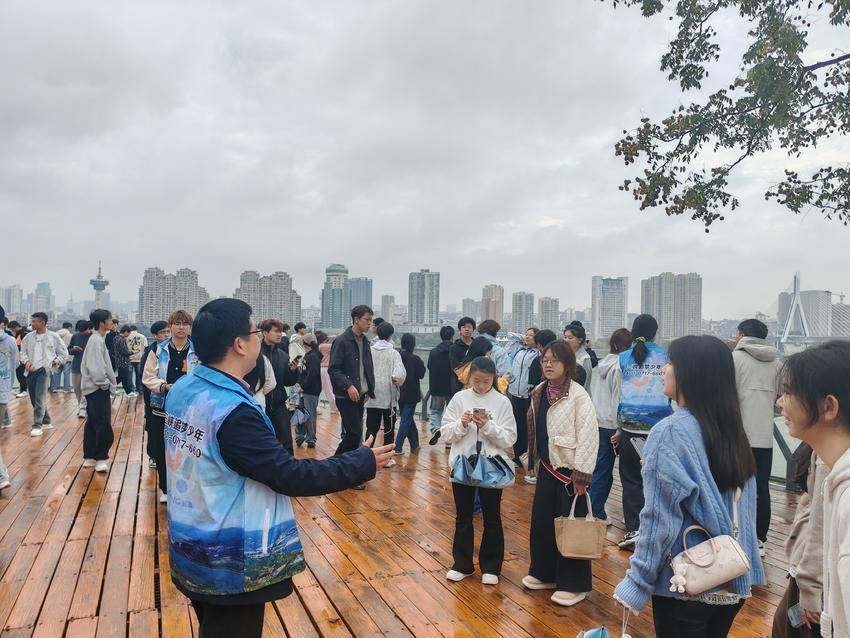 湖北日报客户端讯(通讯员鲁杨、蒋子涵、蒋佳文)“我眼中的宜昌,是路边飘着的桂花香,是磨基山上看得到的夷陵长江大桥!”11月8日清晨,宜昌市点军区磨基山森林公园的“大相框”观景台前,200余名青少年用清亮的声音开启了一场特殊的“生态之约”。据悉,此次活动是“后浪守渔记”生态保护项目的在磨基山的一次生动实践。