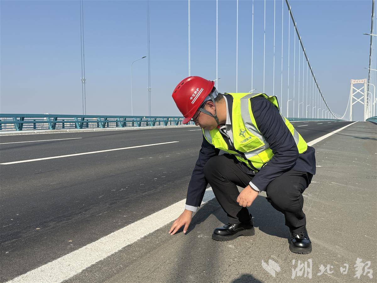 11月5日15时,湖北日报全媒记者随中交特种工作人员踏访鄂黄长江大桥。