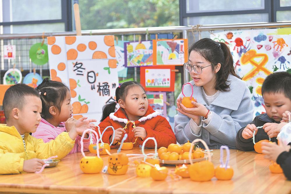 11月7日,在保康县县直机关第二幼儿园,老师指导小朋友们制作小橘灯。当天是立冬节气,该园开展“立冬趣满园 萌娃寻冬味”主题活动,老师详细讲解立冬的由来和习俗,并指导小朋友们包饺子、制作小橘灯、创作彩泥画,在动手实践中传承传统文化。(来源:襄阳日报 乐建鹏 徐珍 摄)
