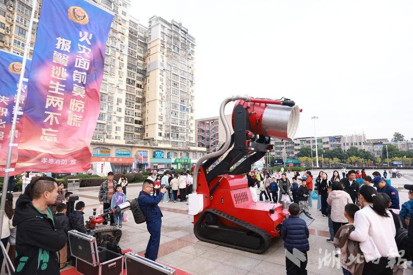 湖北日报客户端讯(通讯员付传虎、范彪)11月9日,在第34个全国消防日之际,孝感市消防救援支队以“全民消防 生命至上——安全用火用电”为主题,在孝感市人民广场举办了一场集教育性、趣味性、互动性于一体的大型消防宣传活动,吸引了广大市民踊跃参与。