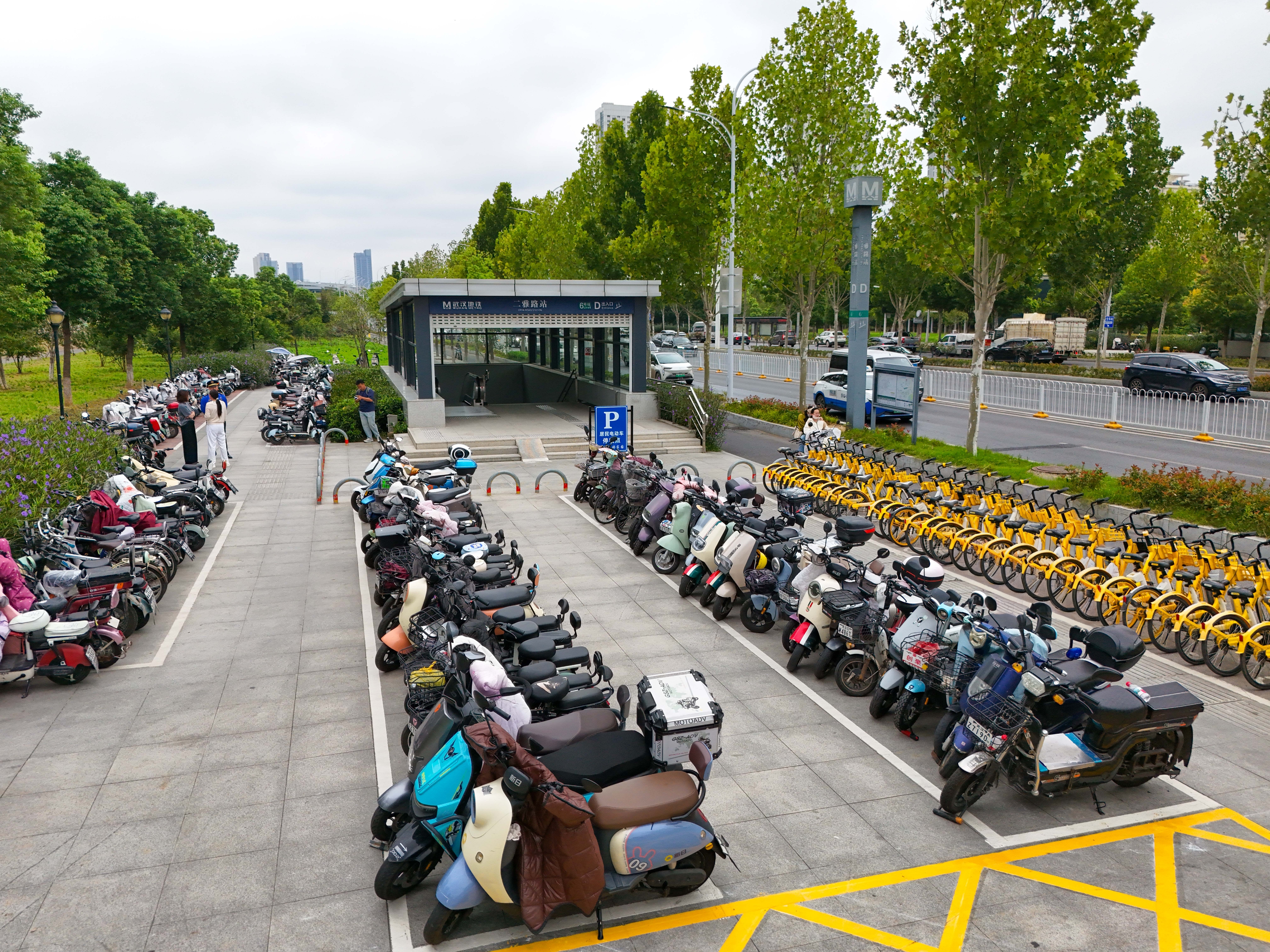 东西湖区二雅路地铁站口,居民电动车、共享单车分区有序停放。通讯员肖敏 摄