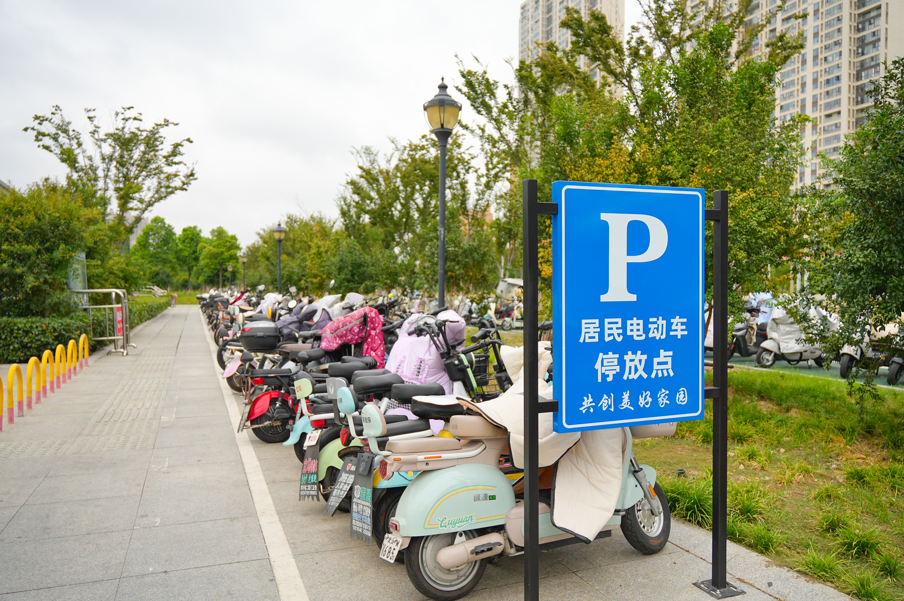 地铁站口的居民电动车停放点有醒目标牌。通讯员肖敏 摄