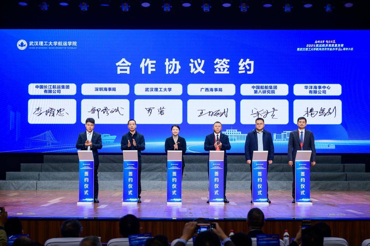 会上,广西海事局、深圳海事局、中国长江航运集团有限公司、中国船舶集团第八研究院、华洋海事中心有限公司5家单位分别与武汉理工大学签署合作协议。双方将进一步深化产教融合、校企合作,在共建科研平台、联合技术攻关、共享人才资源、促进学生实习就业等方面开展多层次、宽领域的务实合作,携手开创互利共赢、协同发展的新局面。