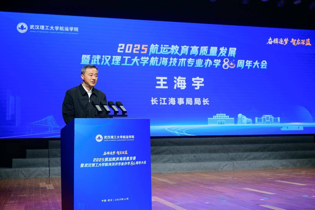长江海事局局长王海宇表示,武汉理工大学航运学院八十载深耕航运教育沃土,为长江航运和海事事业培育一代代栋梁之才,是长江海事逐步发展的重要参与者和见证者,期待未来与航运学院围绕人才培养、智能监管、安全防控等关键领域携手并进,同向同行护航长江安全,为加快建设交通强国添砖加瓦。