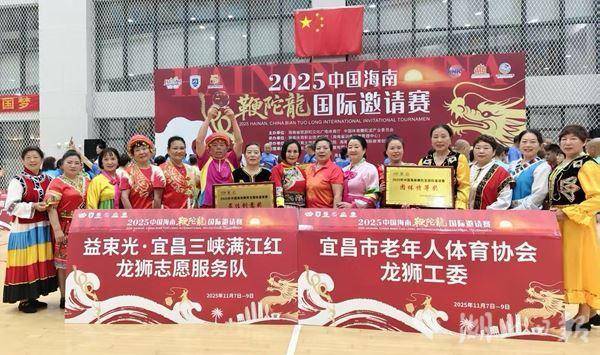 湖北日报客户端讯(通讯员青苹)2025年11月9日,2025中国海南鞭陀龙国际邀请赛在海南圆满落幕。由宜昌市老体协龙狮工委、宜昌市传统文化研究会龙狮专委会与益束光宜昌三峡满江红龙狮志愿服务队联合打造的土家特色彩绸舞《哈格咂》,凭借独特创意与精湛演绎,一举斩获“团体特等奖”和“最佳创意奖”两项大奖。