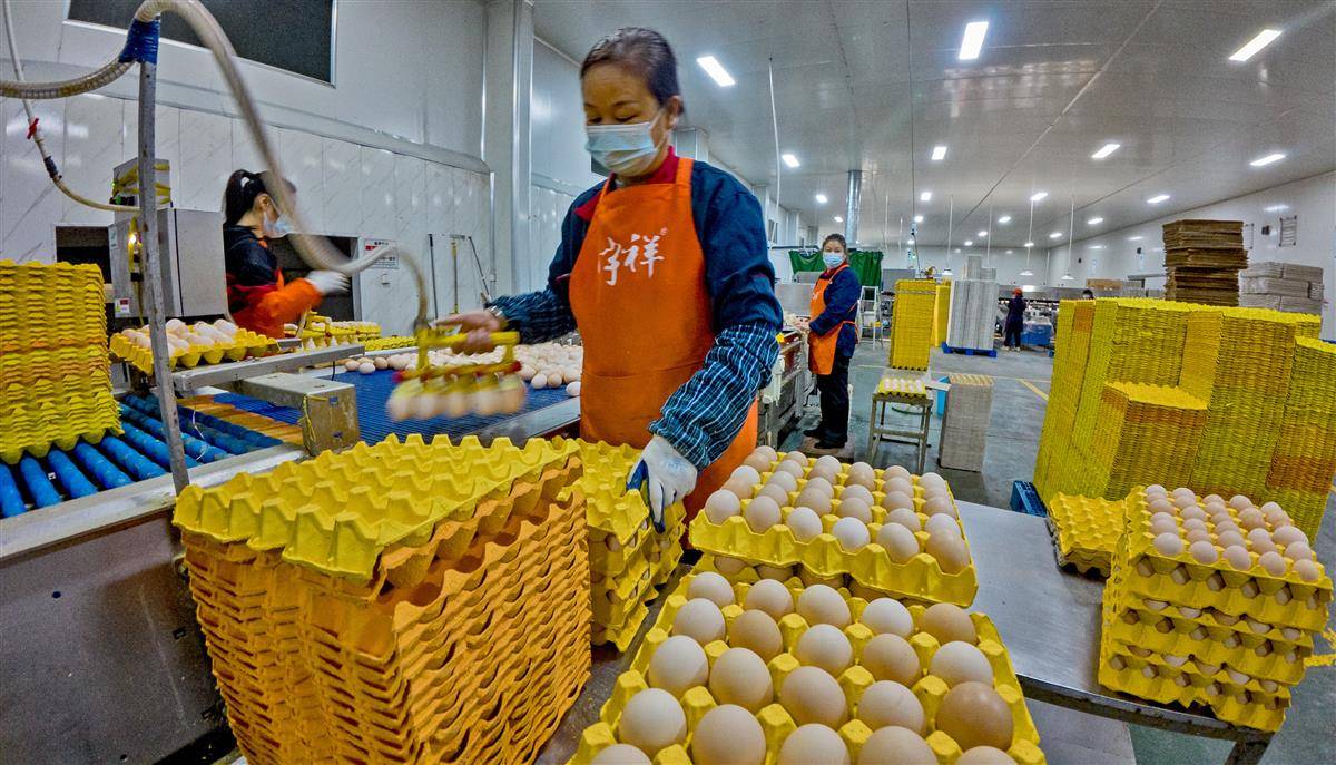11月10日,位于荆州的湖北宇祥畜禽有限公司鲜蛋生产线上,工人们正细致检测每一枚即将发往香港的鸡蛋,以严格标准筑牢产品质量防线。