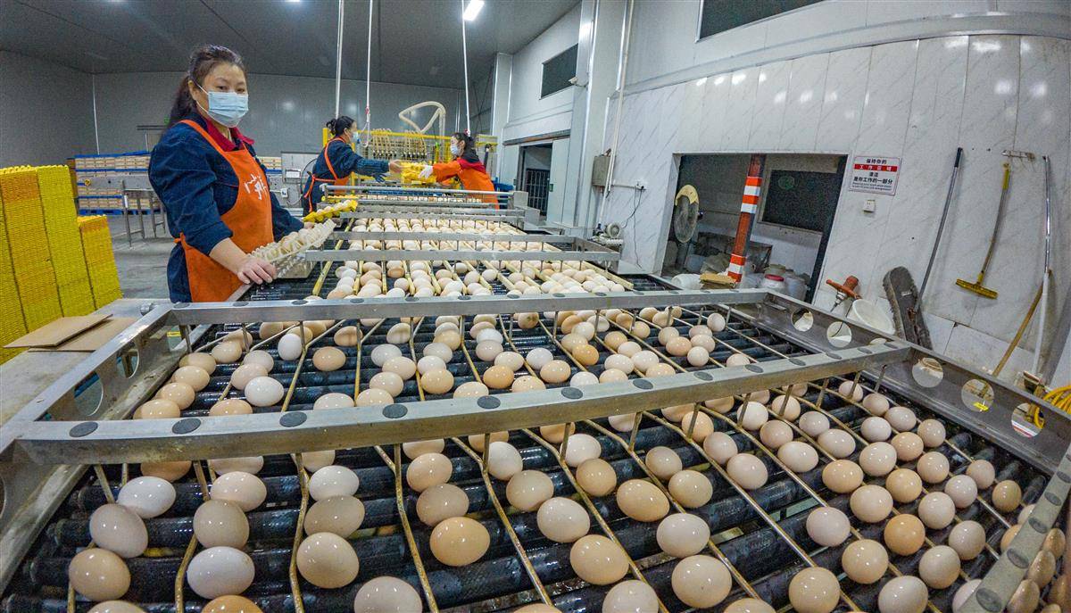 11月10日,位于荆州的湖北宇祥畜禽有限公司鲜蛋生产线上,工人们正细致检测每一枚即将发往香港的鸡蛋,以严格标准筑牢产品质量防线。该企业产品包括鲜鸡蛋、皮蛋、全卤蛋等,销售网络覆盖国内20多个省(市、自治区),同时出口香港、澳门及韩国、澳大利亚、新加坡等国家和地区。数据显示,今年前三季度,公司蛋品产销已超2亿枚。(湖北日报全媒记者 刘曙松通讯员 肖敏 摄)