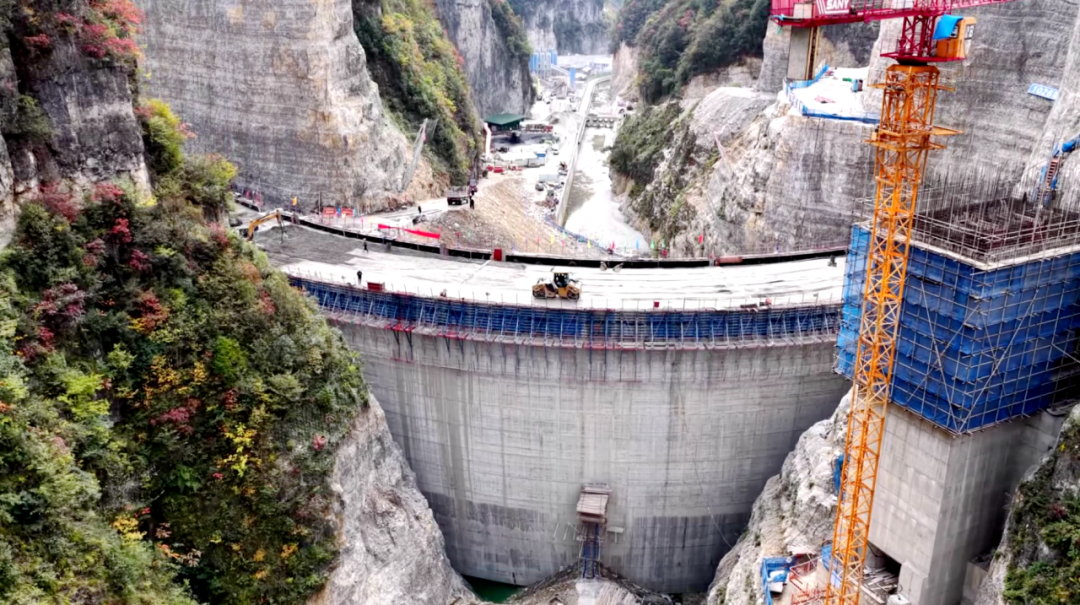 深山峡谷间,一座宏伟的水库大坝正拔地而起。记者在项目现场看到,一辆辆运输车将混凝土源源不断地运送到大坝上,再由挖掘机、推土机、压路机等机械车辆相互协作,将大坝的高度不断抬升。