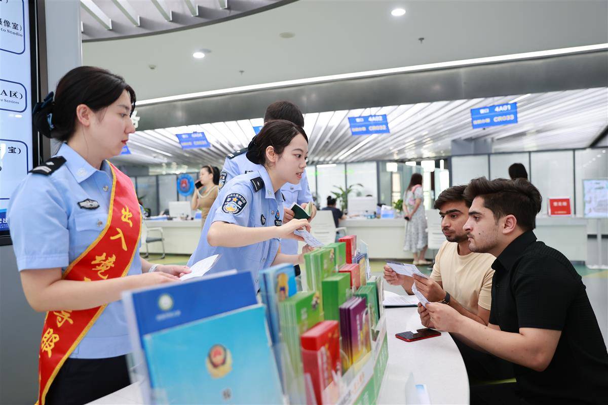 三峡国际机场边检站民警为外籍旅客宣讲出入境政策