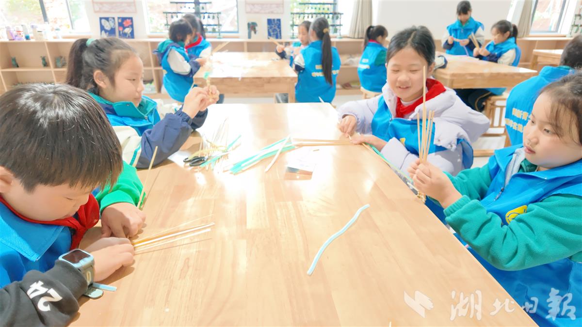 不背课文、不考试,也能学到课本上的知识。在《非遗·草鞋编织》课堂,老师用一则影片作为导入,为学生们介绍在长征途中,红军战士们曾穿着编织的草鞋,一路走过雪山、草地……筚路蓝缕,枪林弹雨。“红军叔叔们太辛苦了,冬天穿着草鞋赶路,特别心疼他们。”学生张雨晴指着自己制作完成的草鞋,不禁发出感慨。
