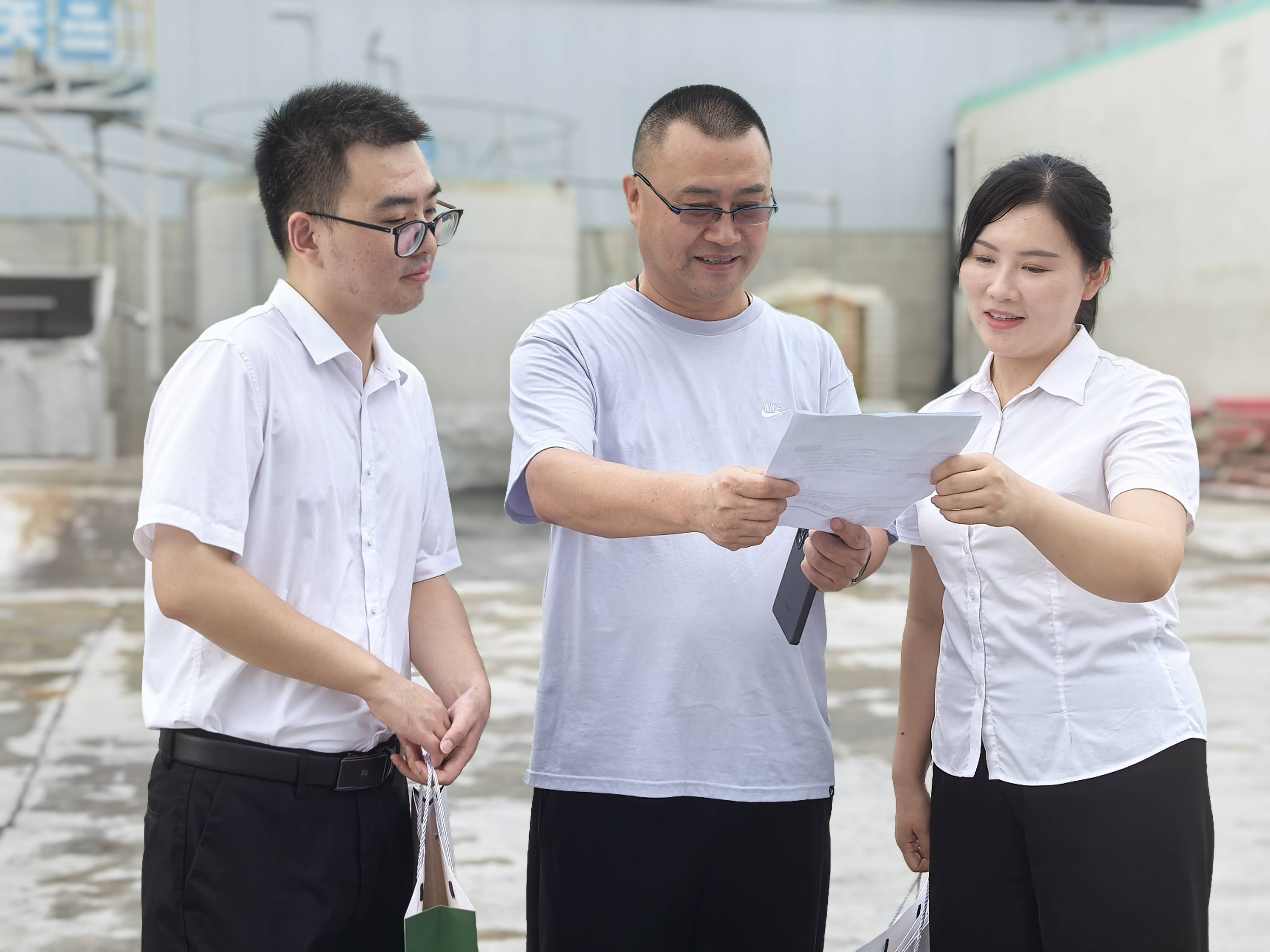 在黄冈市,邮储银行工作人员走访企业推介中小企业商业价值信用贷款。(湖北日报全媒记者 胡祎 摄)