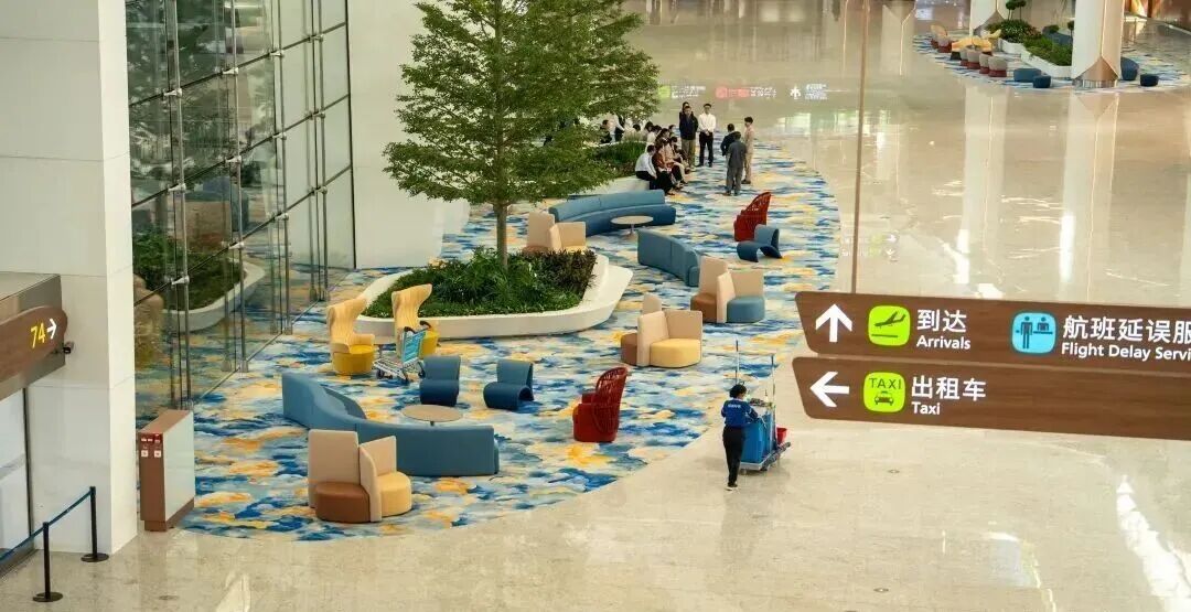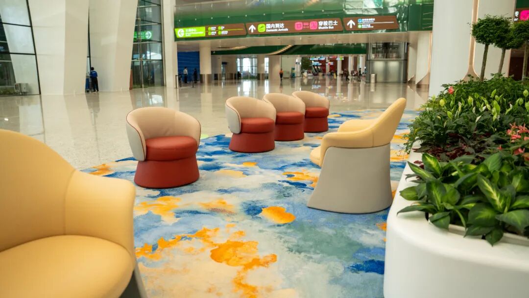 同时,产品拥有卓越的耐磨性、耐刮擦性及高阻燃性,极大地满足了机场高人流量区域的长期使用需求和极高的公共安全标准。兴发集团通过分子结构设计和加工工艺的创新,将材料性能提升至行业顶尖水平。其亲肤柔韧的触感与丰富多样的色彩选择,也为T3航站楼的室内设计增添了现代、温馨的美学体验。