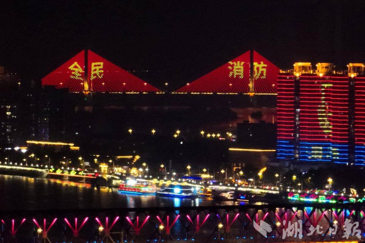襄阳汉江两岸上演消防主题灯光秀 苏晓杰/摄
