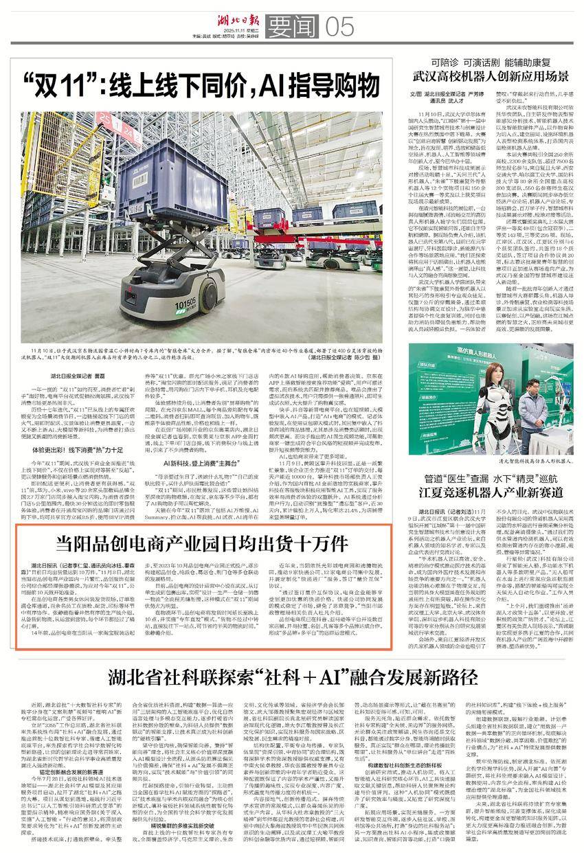 湖北日报讯 (记者李仁玺、通讯员向冰钰、秦森淼)“目前日均出货量达到10万件。”11月8日,湖北当阳市品创电商产业园内一片繁忙,品创服饰有限公司综合部经理张静璐说,为应对今年“双11”,公司提前10天就开始准备。