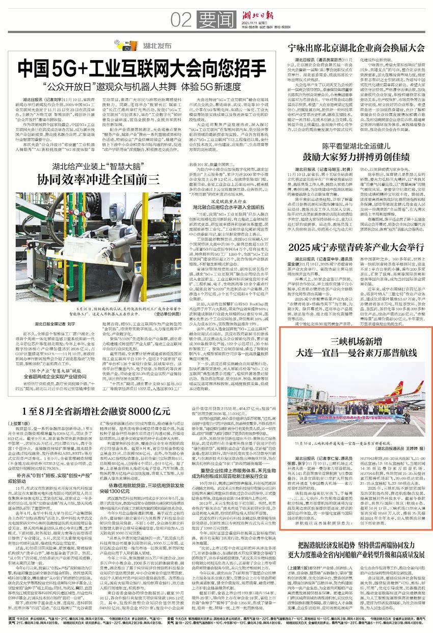 宜昌三峡国际机场已开通5条国际及地区航线,今年从该口岸累计出入境人员11.2万人次,在中部六省非省会城市中排名第二,外籍旅客占比达59.2%。