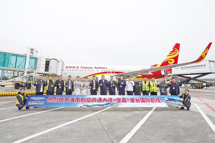 新航线往返具体航班信息为:HU7943航班,08:30从大连起飞,11:00抵达宜昌;12:10从宜昌起飞,当地时间14:35抵达曼谷素万那普机场。HU7944航班,当地时间15:35从曼谷素万那普机场起飞,20:00抵达宜昌;21:15从宜昌起飞,23:50抵达大连。